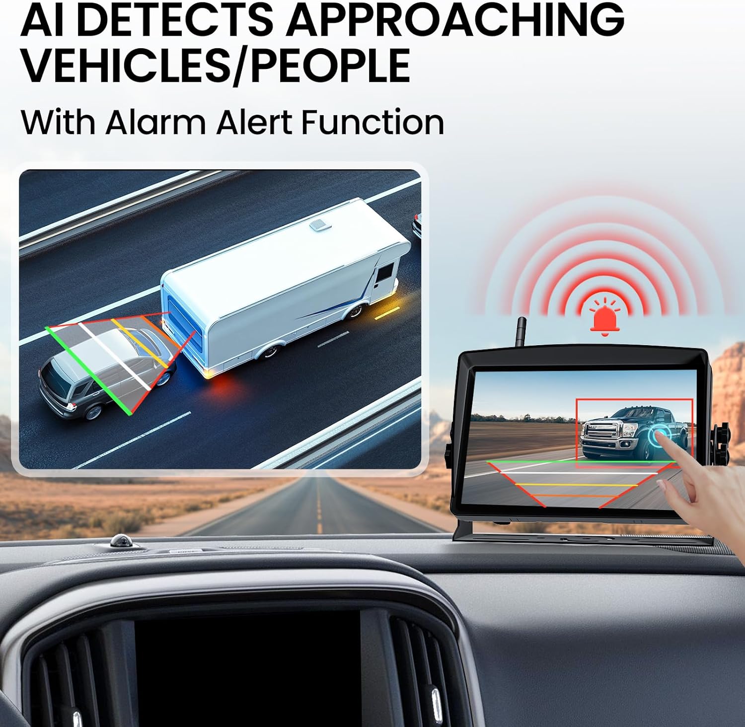 - AI Detection with Real-Time Alerts: Our vehicle backup cameras keep you safe with advanced AI technology that instantly detects pedestrians, vehicles, and obstacles. Get real-time alerts to stay informed and in control, whether you're reversing or driving. Drive smarter, safer, and with confidenceâevery time.