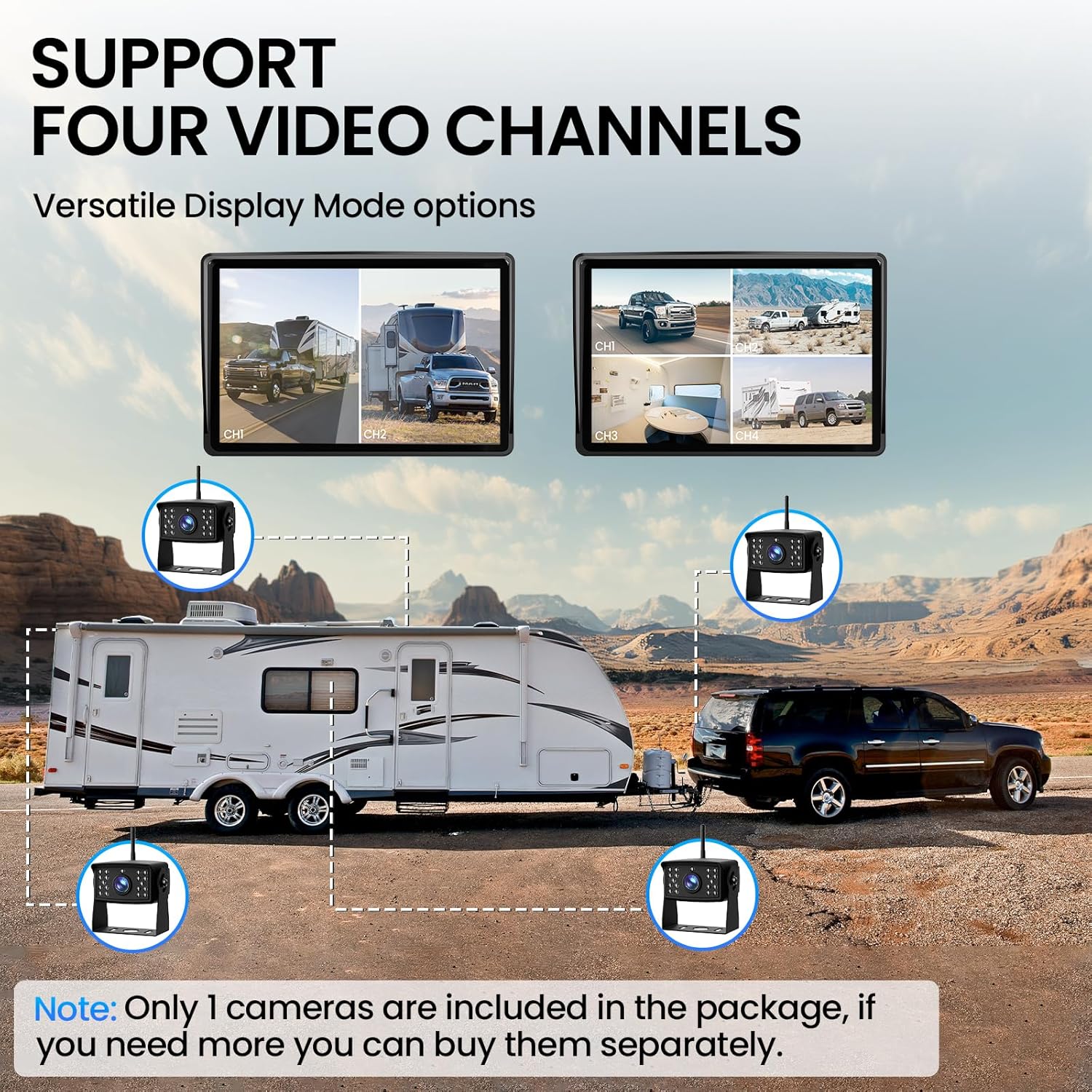 RV Backup Camera, Vehicle Backup Cameras with 7-Inch Touchscreen Monitor, Wireless HD 1080P, 4-Channel System, IR Night Vision, Waterproof Rearview Camera for RV, Truck, Van, SUV, Trailer