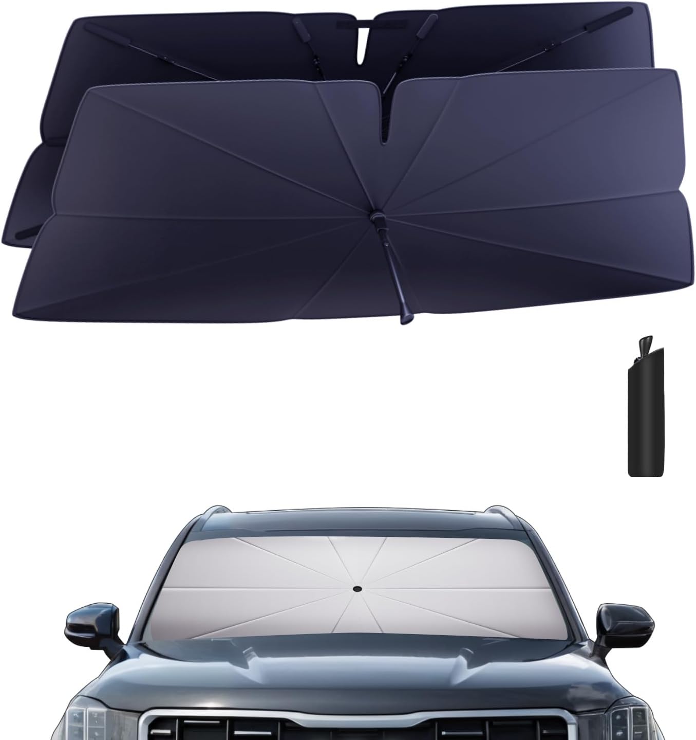 - Quick Installation and Portability for Kia Telluride: This Kia Telluride windshield sun shade umbrella provides instant shade and UV protection for your Kia Telluride. Its compact, foldable design fits neatly in the side storage, ensuring your Kia Telluride is always ready for sun protection. Perfect for every Kia Telluride owner, keeping your vehicle cool and protected.