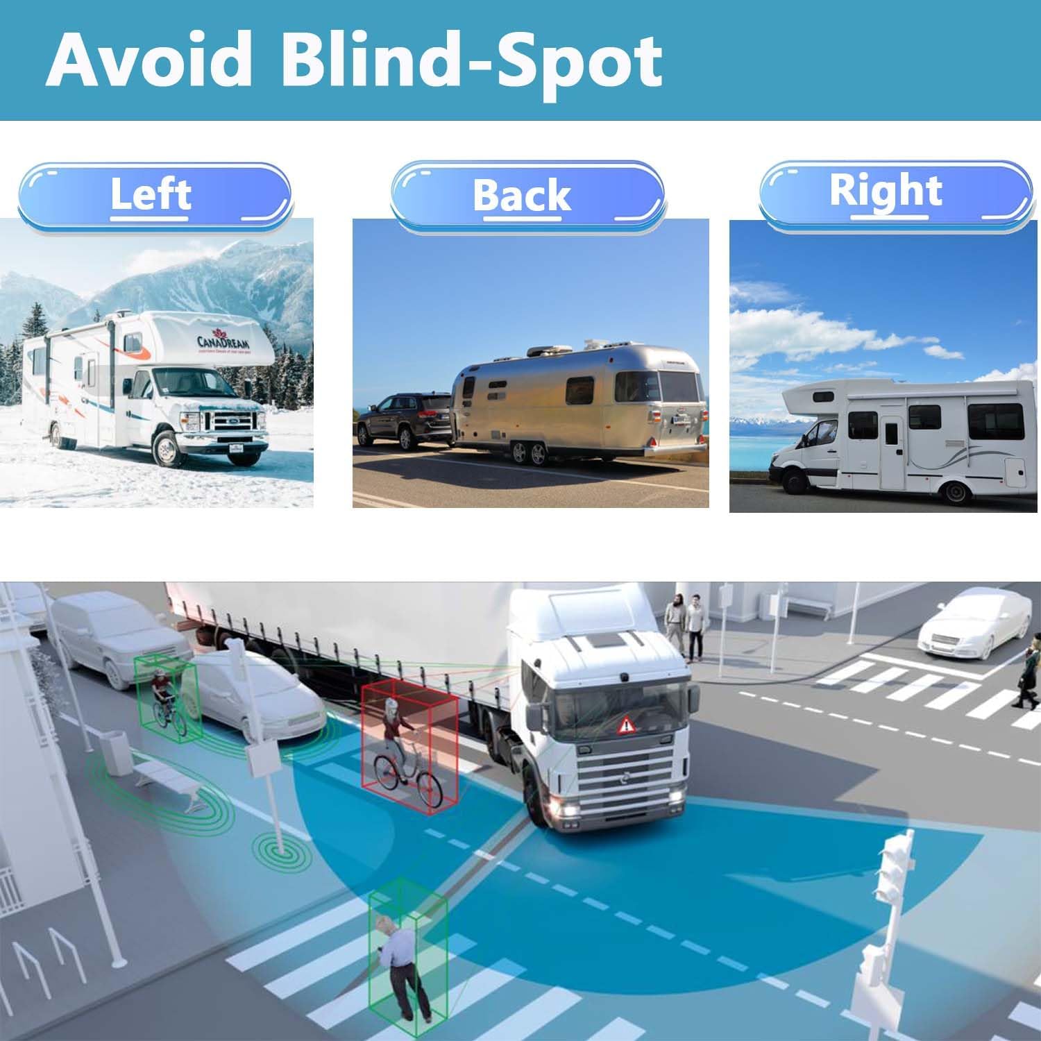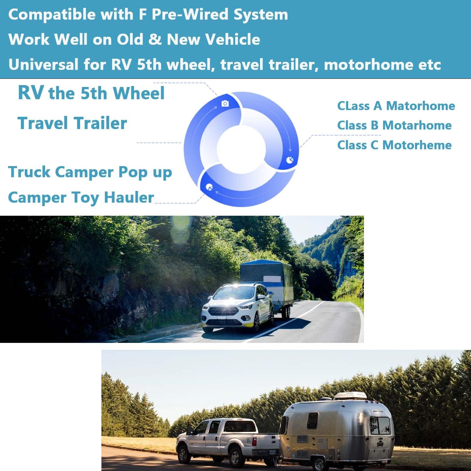 - Touchable 10.36 inch 4K Monitor:Wide 10.36 inch Screen,so we can observe 100% road situation.Larger screen,safer driving.2 split screen,2 channels,2 different angles help us to get a 360 degree view.For rear,parking, front, side,left,right,hitch,turn signal view.We also can choose the monitor to display 1/2 cameras' image.We can drive confiedntly.
