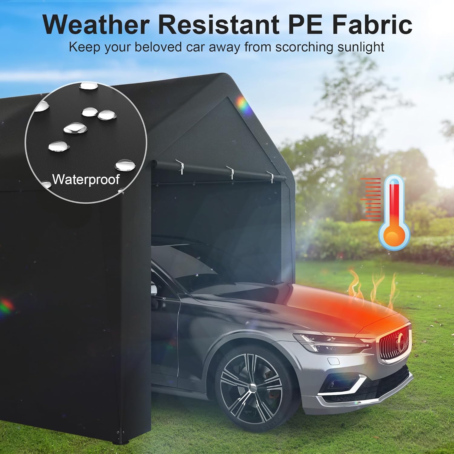 - 【All-season Heavy Duty Carport】The roof is made of 180G PE material that effectively blocks 90% of UV rays and protects your vehicle from seasonal weather conditions. The high-quality rust-resistant and corrosion-resistant white powder-coated steel frame prevents cracking, peeling, rusting, and corrosion.
