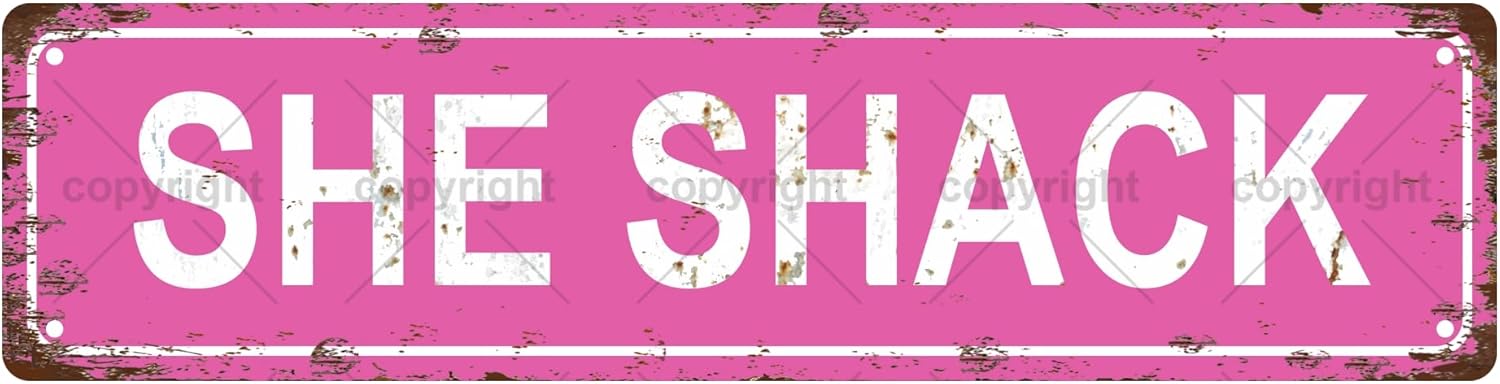 SHE SHACK Space Vintage Metal Tin Sign, Street Sign, Home Decor, Room Decor, Wall Decor, Bathroom Decor, Bar Decor, Cafe Decor, Garage Decor, 16 x 4 Inch