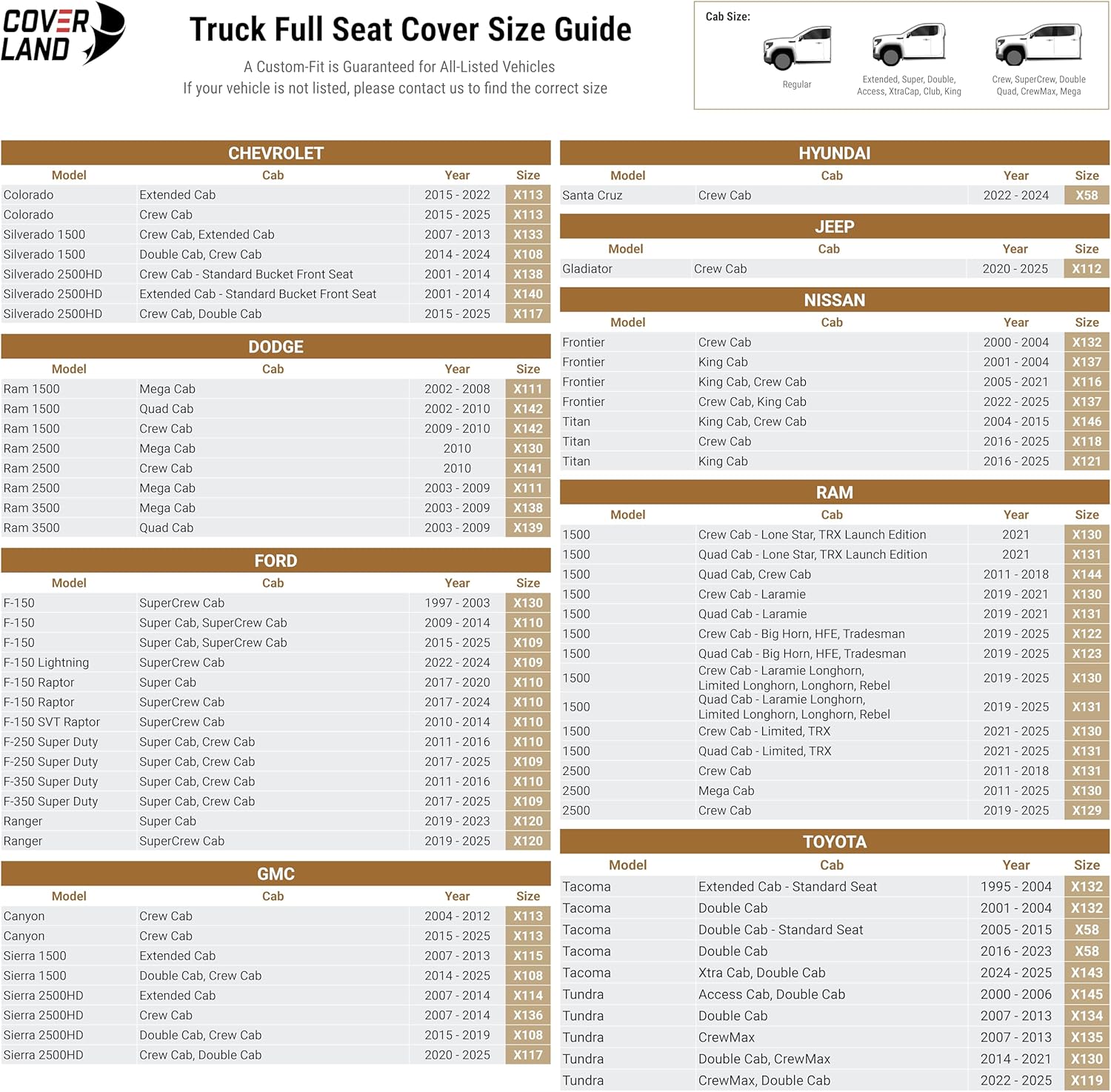 Coverland Custom Car Seat Covers Compatible with F150, F250, F350 Super Duty - Premium Leather Non-Slip Memory Foam Waterproof Custom Interior Protector Full Set-Black [See Size Chart-Size X109]