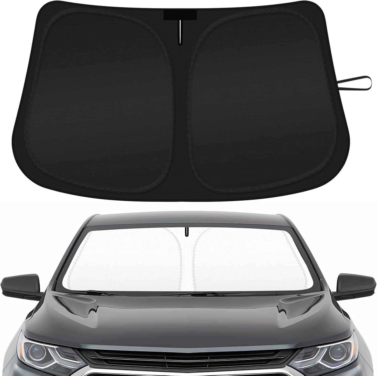 - 【Effective Interior Protection】The chevy equinox sunshade adopts a double-layer design, the silver layer in the car sun shade reflects sunlight falling on the windshield, and the black layer reduces the hot temperature inside the cabin. The sun visor chevy equinox prevents fading of upholstery and dashboards from UV rays, and reduces strain on the air conditioning system.