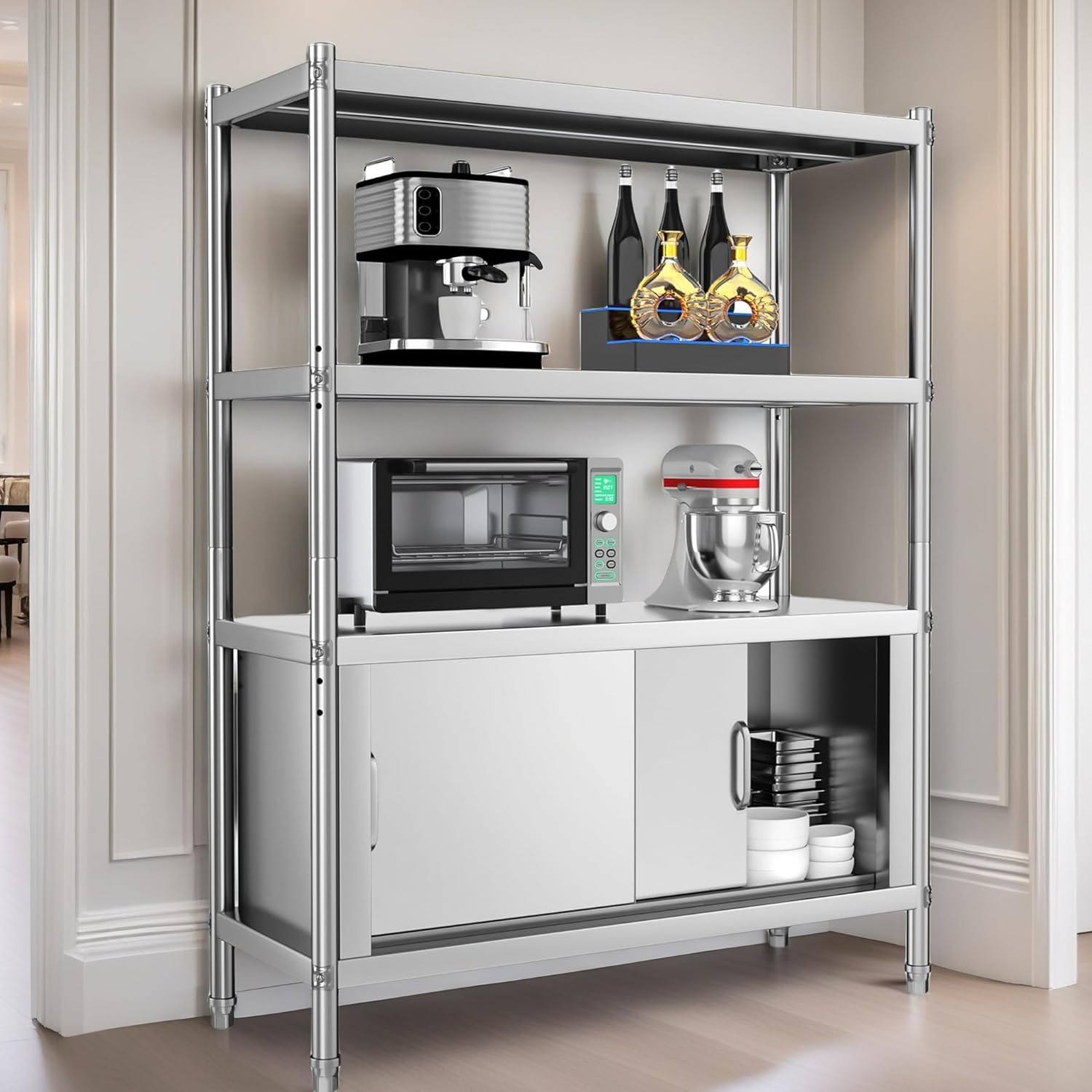 YITAHOME Stainless Steel Shelves 4 Tier, 48x18x60in Storage Shelf Unit with Cabinet, NSF Heavy Duty Floor Mount Shelving for Kitchen Garage Office Restaurant Warehouse, Indoor