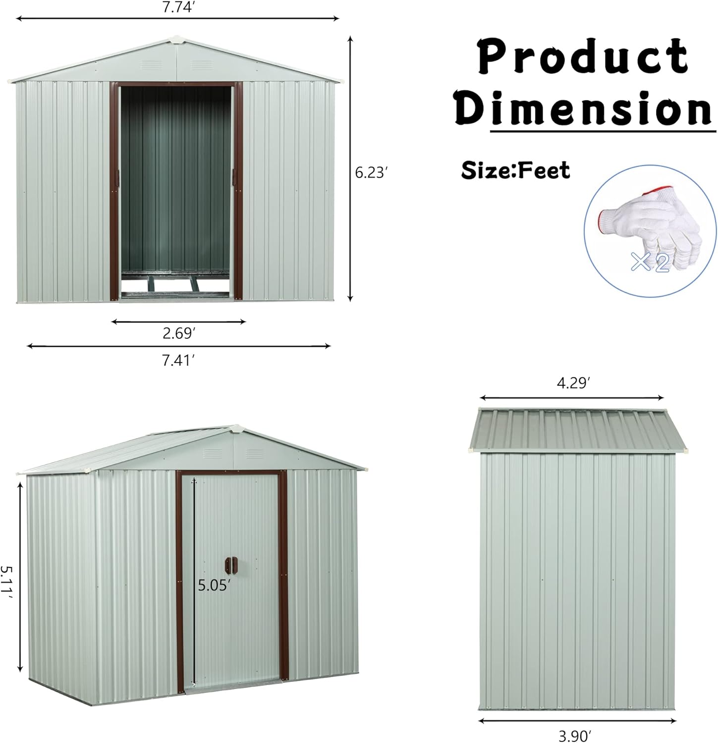 - ๐ก๐๐ฅ๐ฅ-๐ฐ๐๐๐ญ๐ก๐๐ซ ๐๐ญ๐จ๐ซ๐๐ ๐ ๐๐ก๐๐: Our metal shed 4x8 features sliding doors that open and close smoothly, with handles and a heavy-duty lock for added security. It serves not only as a safe space for storing garden tools but also as a warm pet house. The sloped roof of the storage building effectively prevents leaks and snow accumulation, while the four integrated punched vents improve airflow, helping to keep your items dry.