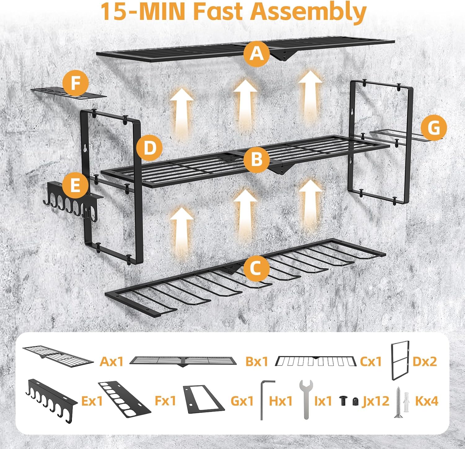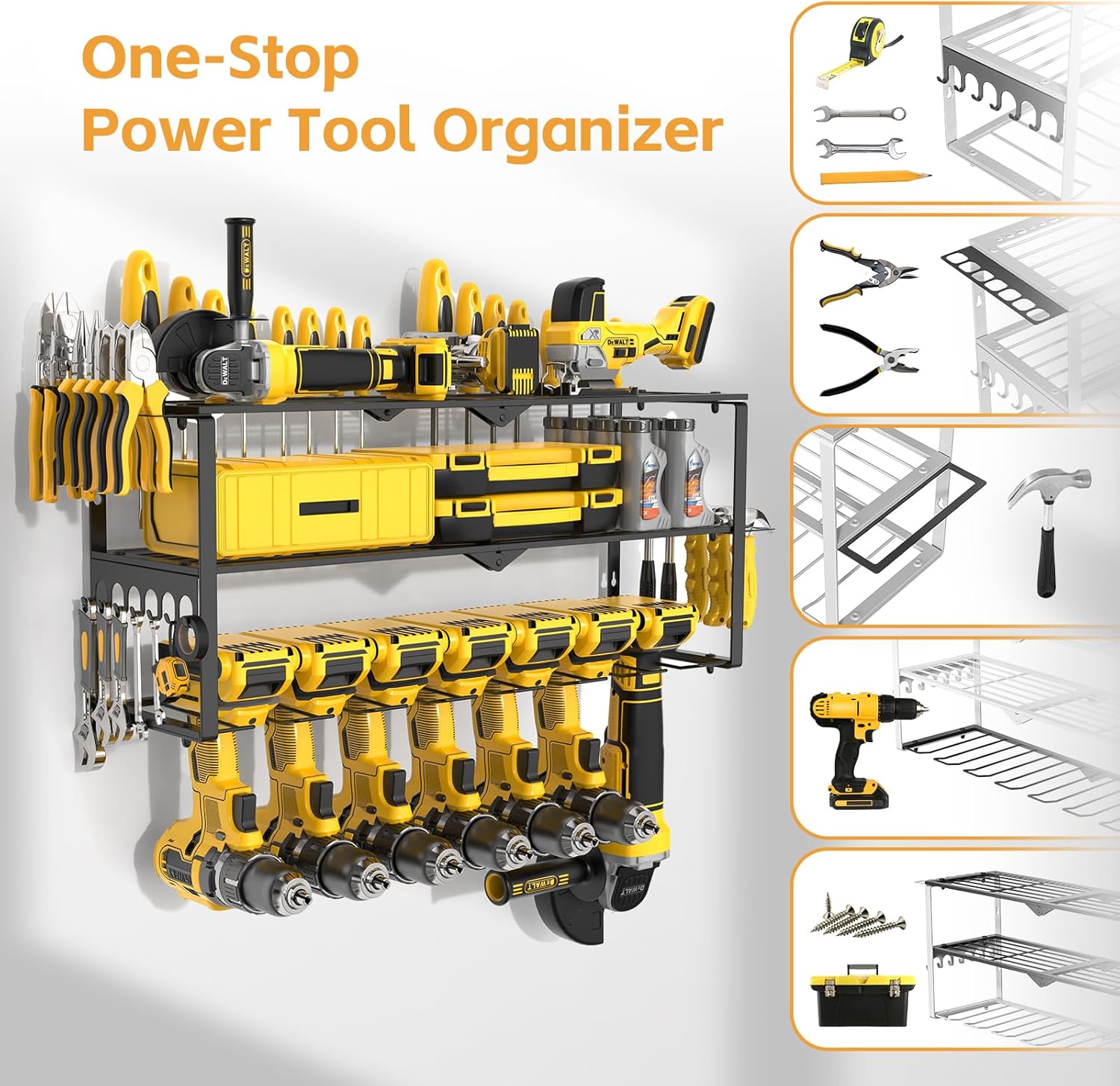 - 15 Mins Fast Installation: This power tool storage rack comes with 3 already assembled shelves and installation manual inside the package, making its easier and time saving to install.