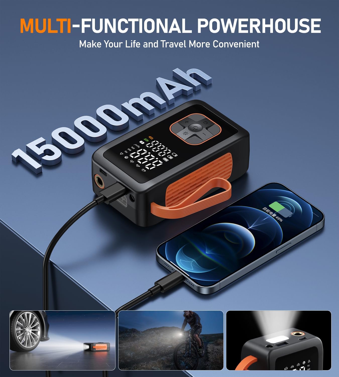 - 【Multifunctional Integration】It is not only an air compressor, but also serves as your emergency power supply. It is equipped with high - brightness LED lights to illuminate nighttime travel. The newly added deflation function allows you to release air by simply pressing and holding the exhaust button when the tire pressure is too high