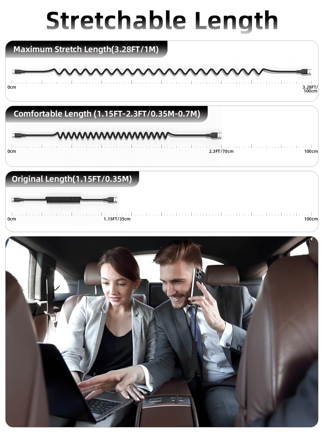 - 【Coiled USB C Fast Charging Cable for Car】: 3 ft coiled iphone charger cord (tensile length: 1.15FT-3.28FT) can well save the use of space, Perfect choice for use for car chargingand backseat.