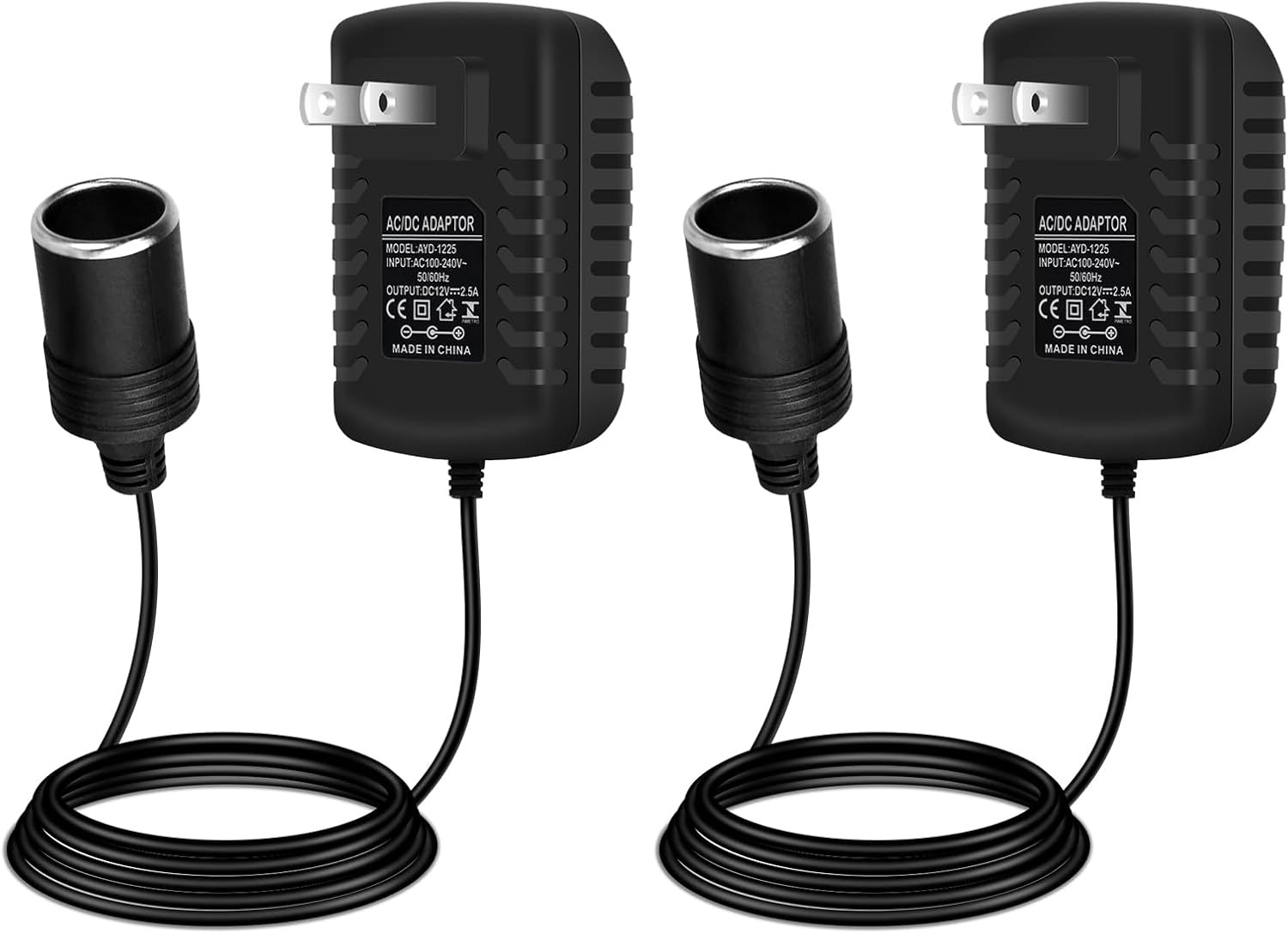 - Input: 100-240V AC; Output: 12V DC 2.5A 30W; Plug Type: Standard U.S. 2-pin plug and female car cigarette lighter adapter; Suggestion: For optimal performance, use no more than 80% of the 12V driver's capacity. Ensure your device uses a standard car cigarette lighter plug before use