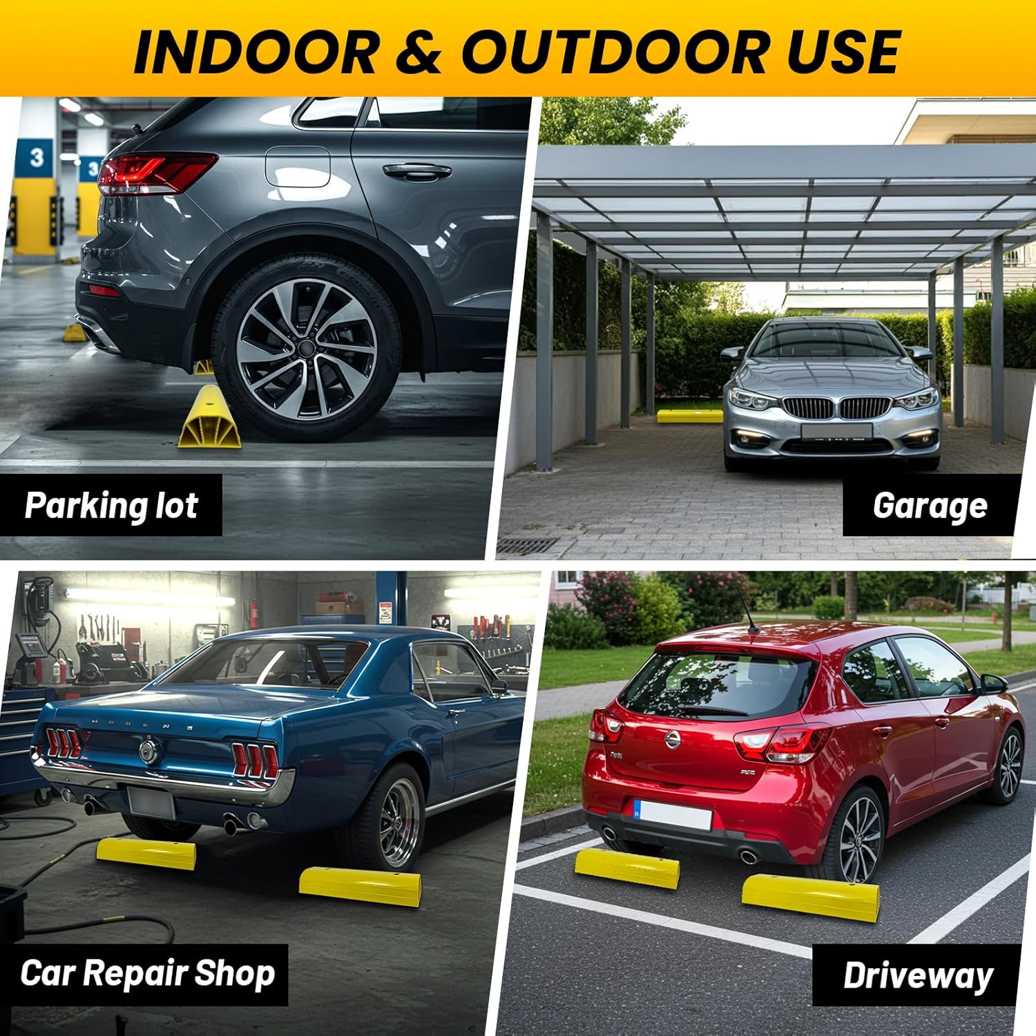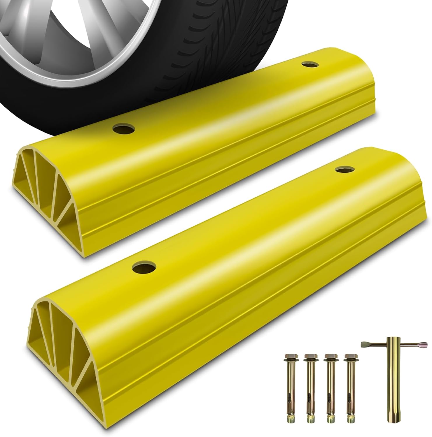 • High Visibility: The striking yellow color creates a sharp contrast with the surroundings, making the parking block highly noticeable and easy for you to locate and park. Even in a dimly lit basement, you won't have to worry about tripping
