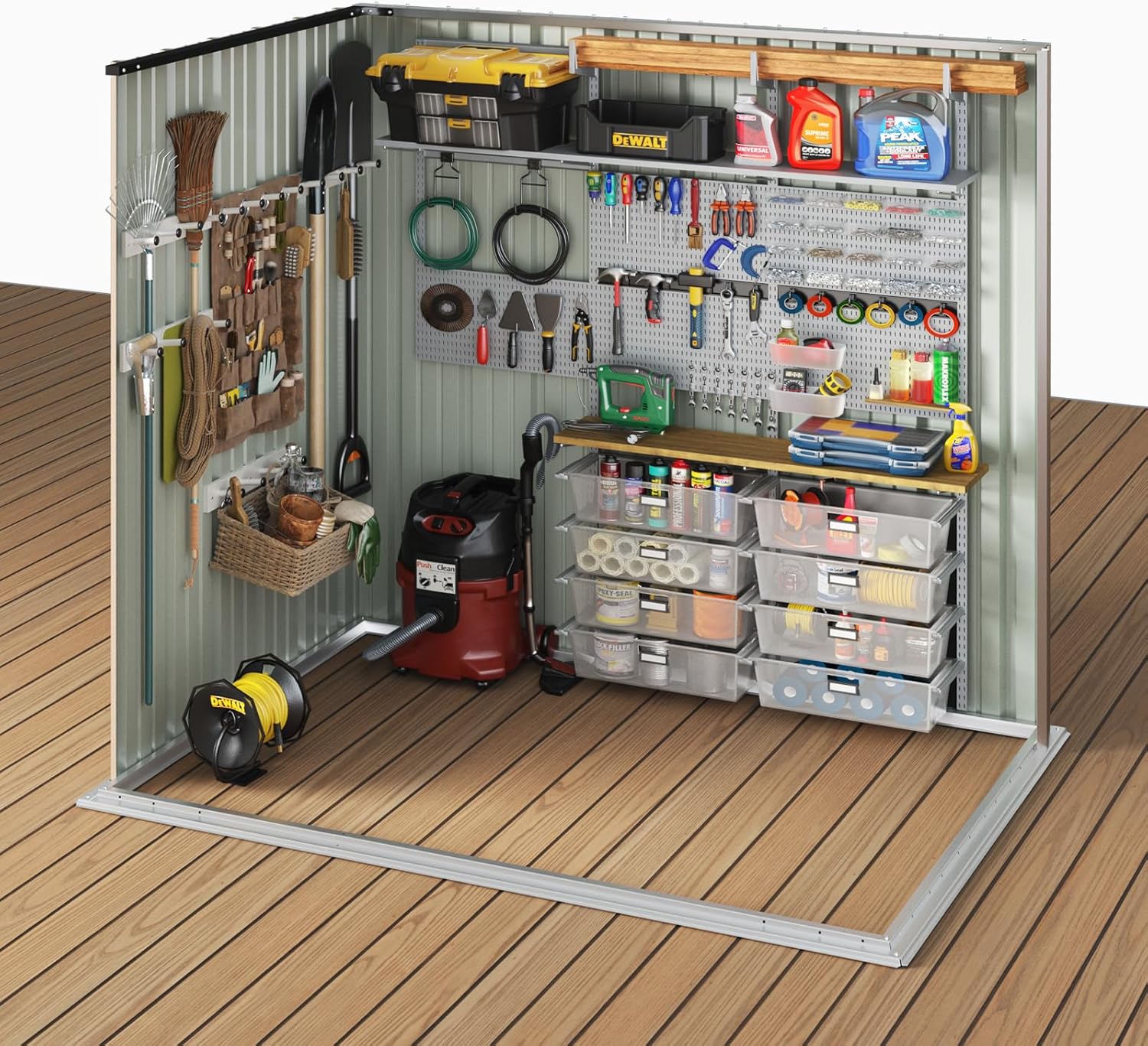 - Secure & Weather-Resistant Construction: Featuring a reinforced single-slope roof for rapid rainwater drainage panels with precision connection, this shed withstands extreme conditions. The lockable doors add an extra layer of security against theft and unwanted pests