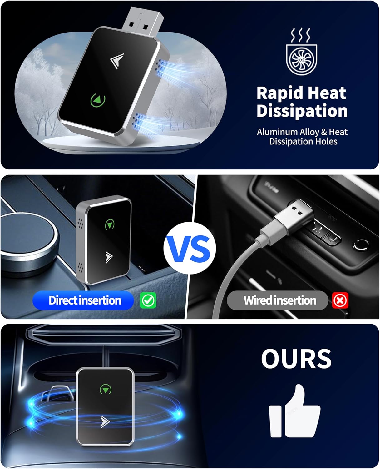 - 【Plug and Play, Smart Connection】:Get started quickly with Android Auto or Carplay in just 3 steps of setup, no additional apps or drivers required. Once paired, the wireless adapter automatically reconnects every time, so you can enjoy seamless connectivity with just one setup.