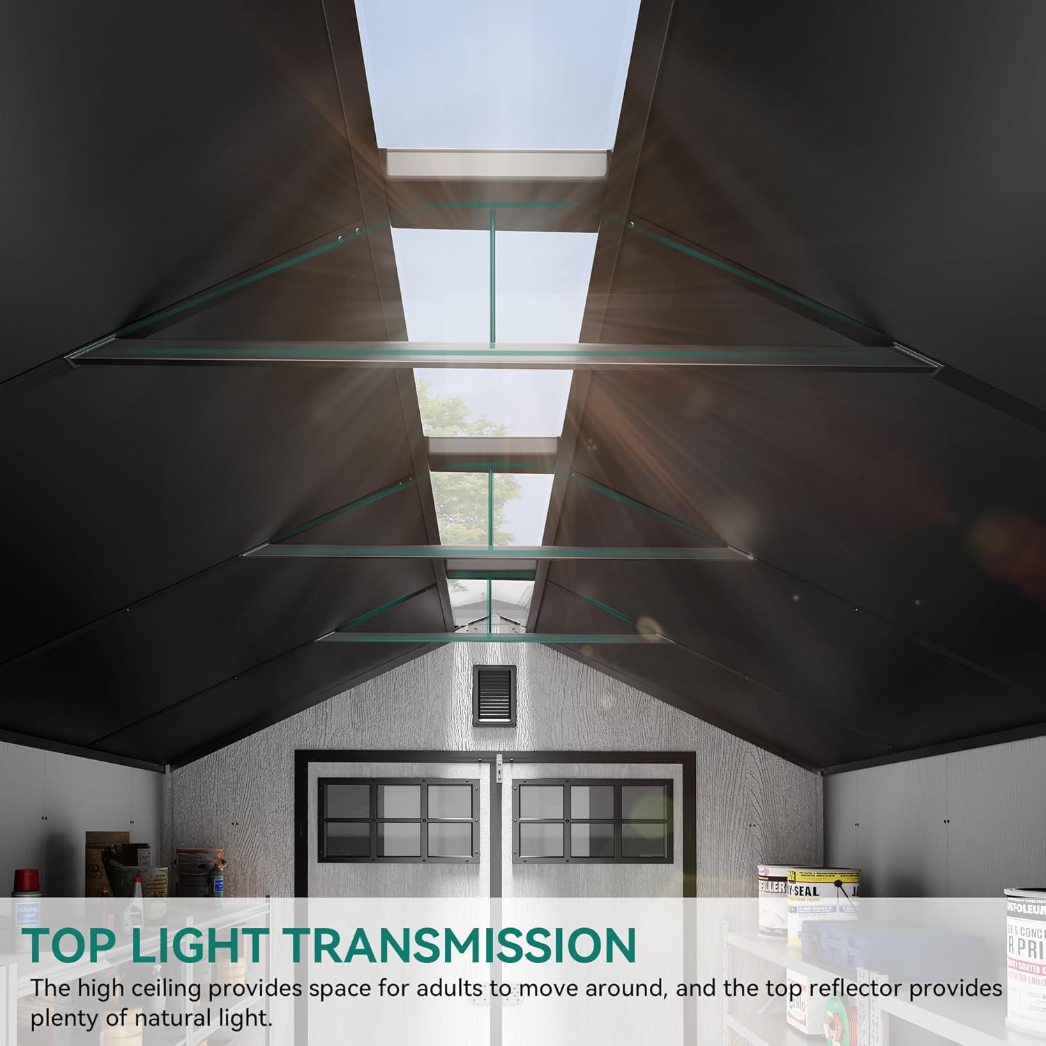 - Enhanced Security and Natural Light: The plastic storage shed includes lockable double doors with transparent windows for security and style; The translucent roof panel allows natural light in, illuminating the interior and making it easier to find items