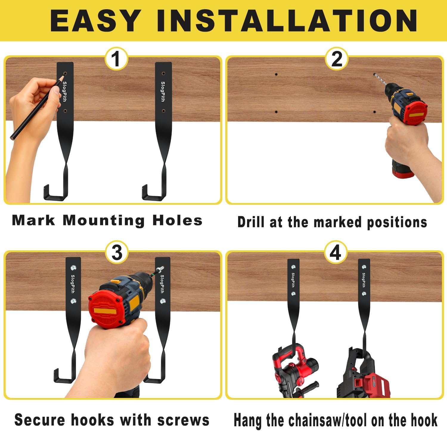 - Quick & Secure Installation:Includes screws and pre-drilled holes for effortless setup, add a spacer (like 2x4 wood) to create hanging space, mounts on walls, rafters, or cabinets—chainsaw wall mounted stability in minutes