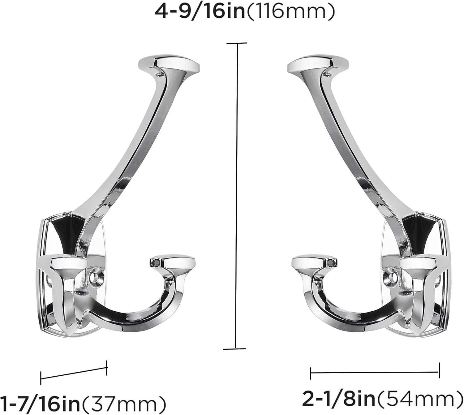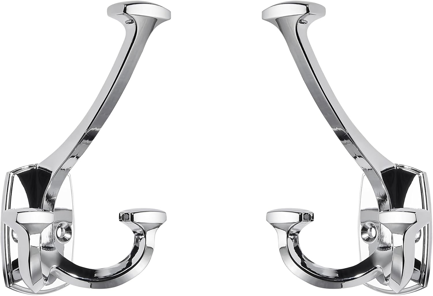 Large Wall Double-Sided Hook 5 Pack Polished Chrome Hook Decorative Heavy Duty Solid Large Coat Hooks for Towel Hanging Coats Robe Towel Bags Door Back 2 Prong Hooks