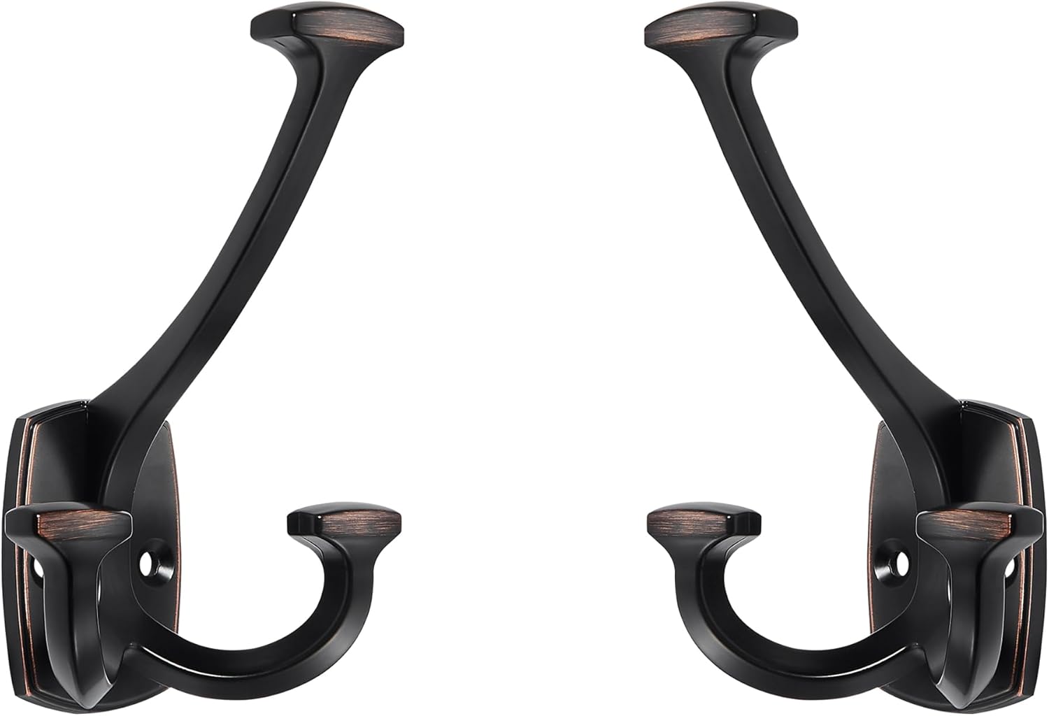 Large Wall Double-Sided Hook 5 Pack Oil Rubbed Bronze Hook Decorative Heavy Duty Solid Large Coat Hooks for Towel Hanging Coats Robe Towel Bags Door Back 2 Prong Hooks