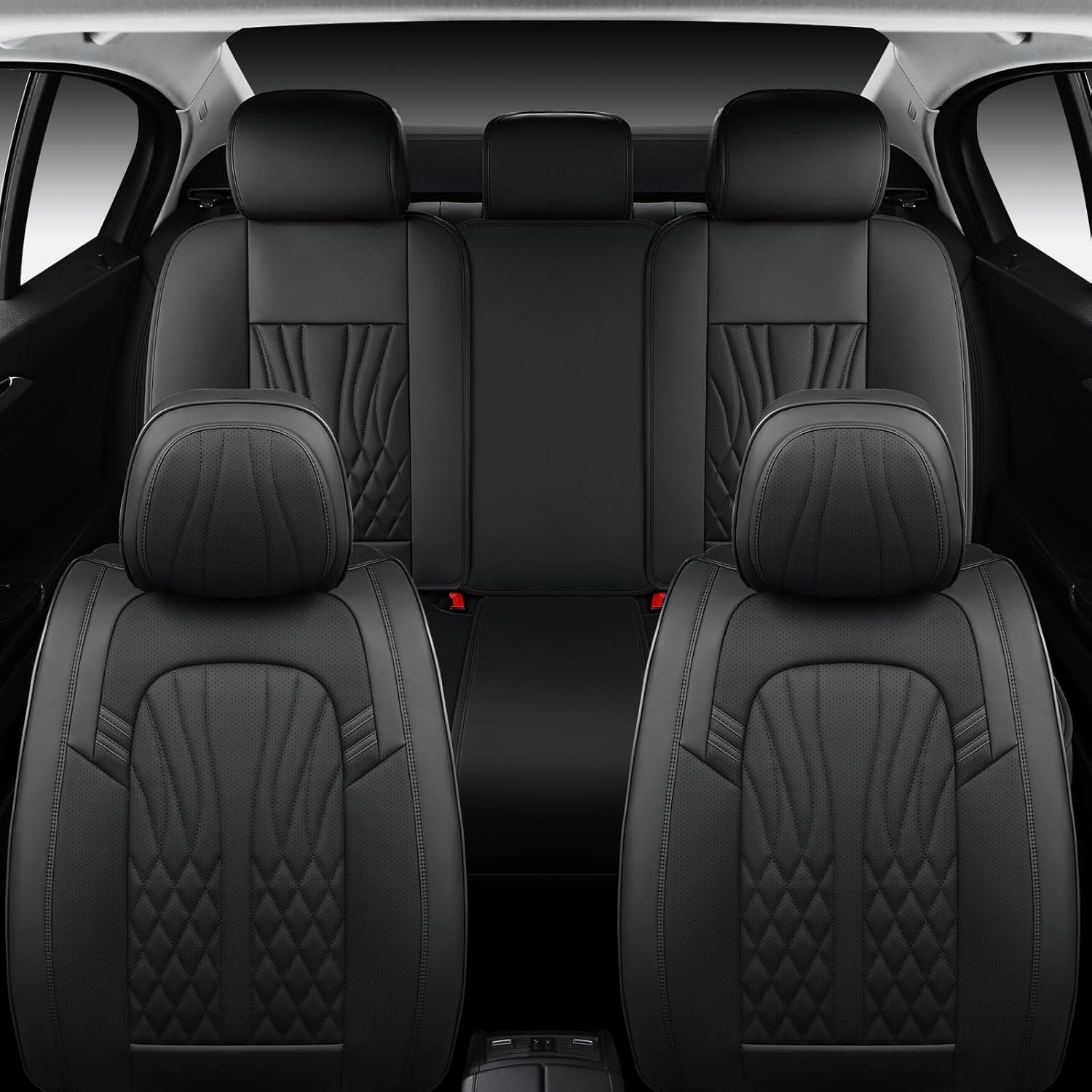 Leather Seat Covers,Car Seat Protector Waterproof,Seat Covers Full Set, Car Seat Protectors 5 Seats,Automotive Seat Covers Fit for Most Cars Black