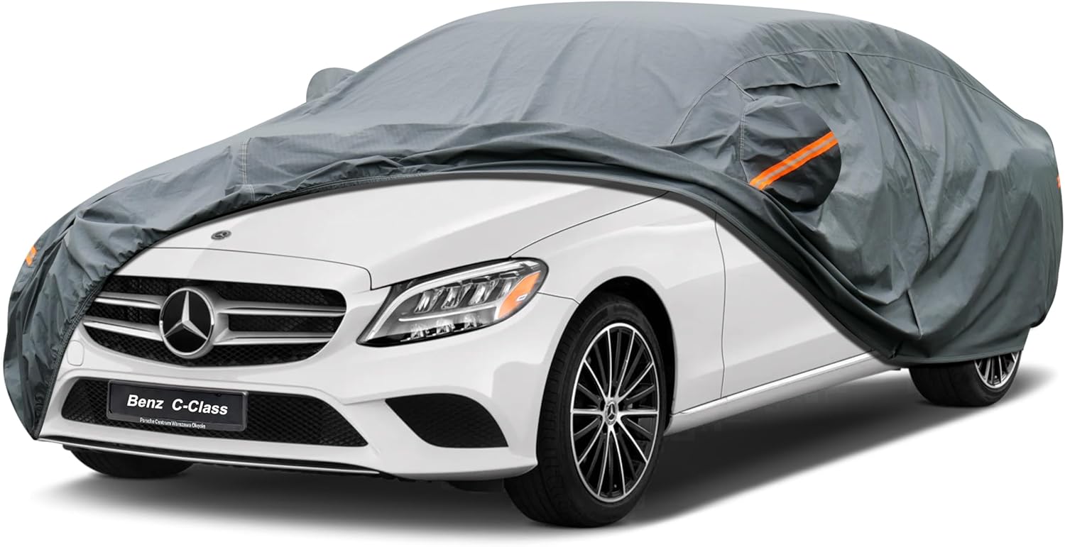 Premium Car Cover Custom Fit Mercedes-Benz C Class C250 C300 C350 C400 C450 C63 AMG, 16 Layers Heavy Duty Car Cover Waterproof All Weather with Zipper Door for Sun Rain Snow Dust Uv Protection
