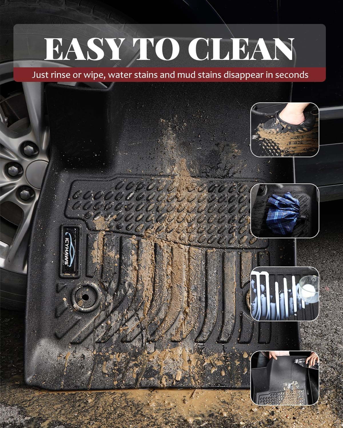 - SECURE & EASY TO CLEAN | Equipped with an anti-slip surface and buckle system, the mats stay firmly in place. Cleaning is effortless—simply hose them down or wipe with a damp cloth.