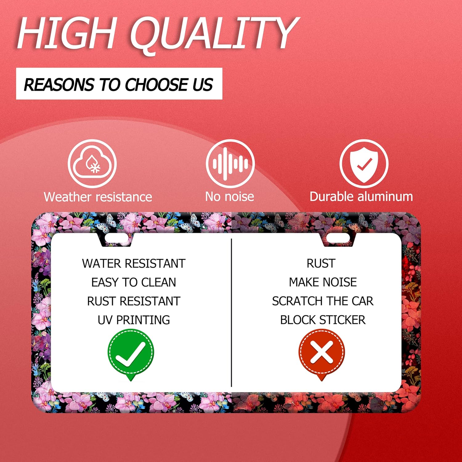 Cherry Blossom Butterfly License Plate Frame Funny License Plate Frames Stainless Steel Accessories Cars Decor with 2 Holes and Screws Fits Standard Us Ca Vehicles License Plate Holder 12.2 X 6 Inch
