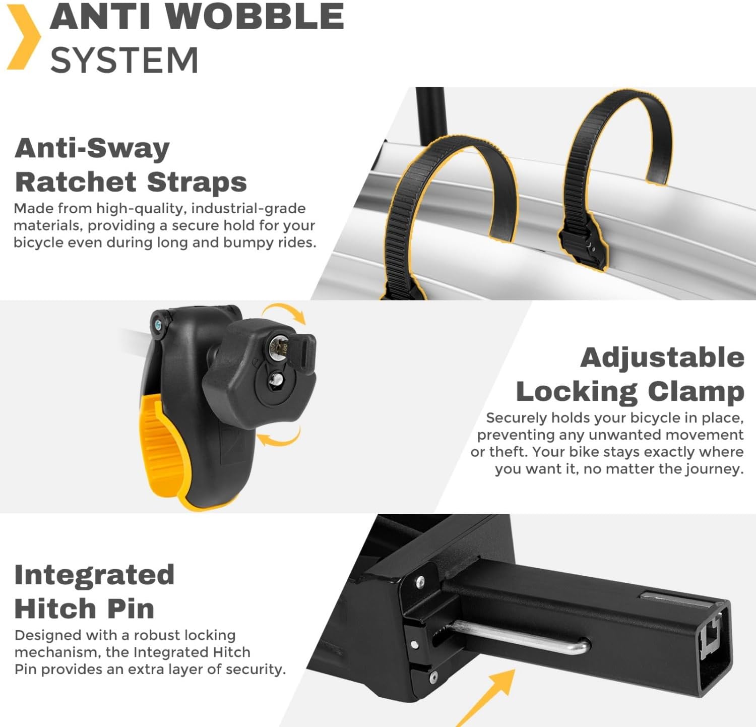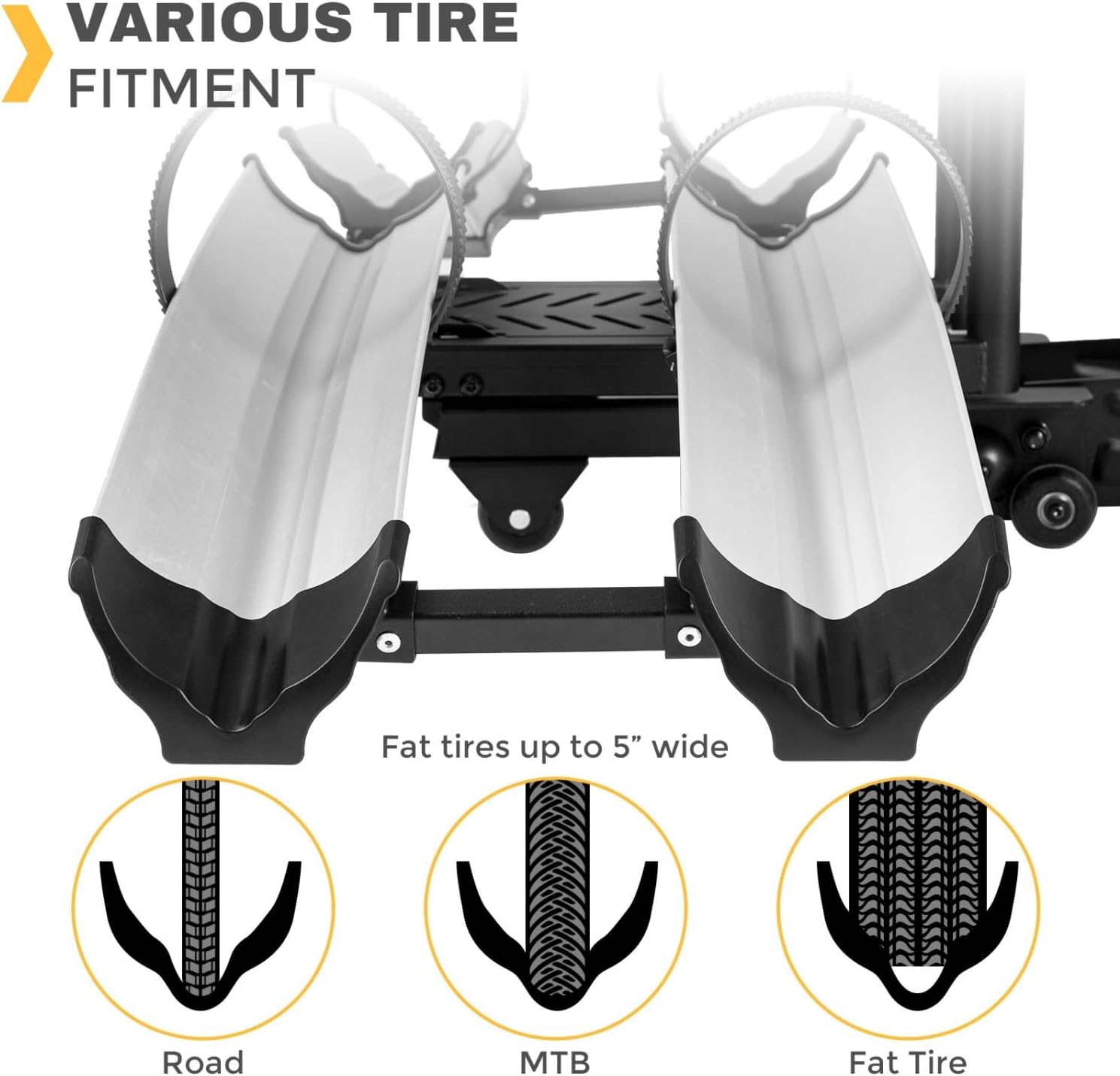 - Universal Compatibility β Fits most 2-inch hitch receivers and works with electric, mountain, and fat-tire bikes (up to 5" tires).