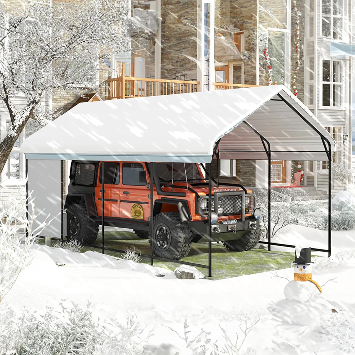 - Heavy-Duty Metal Carport: Unlike flimsy cloth-covered options, this car port features a robust steel frame and metal roof, 50% heavier than products on the market, built to withstand extreme weatherâkeeping your car safe in any condition