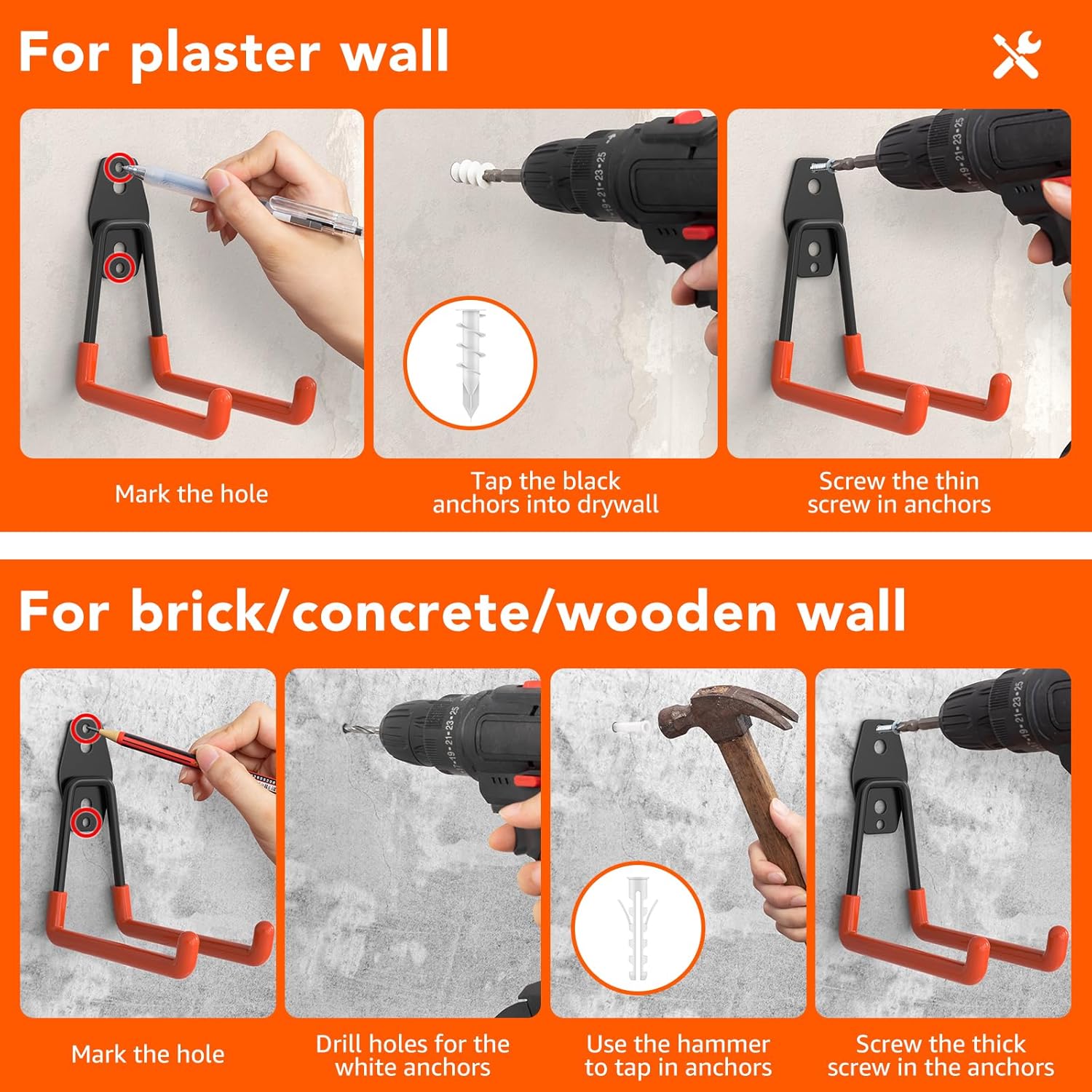 - 【Customizable for Every Space】Garage storage hooks can be used to solve your problems in storage and space planning, and because of their good corrosion resistance and stability, they can be used indoors as well as outdoors, helping you to arrange your belongings properly