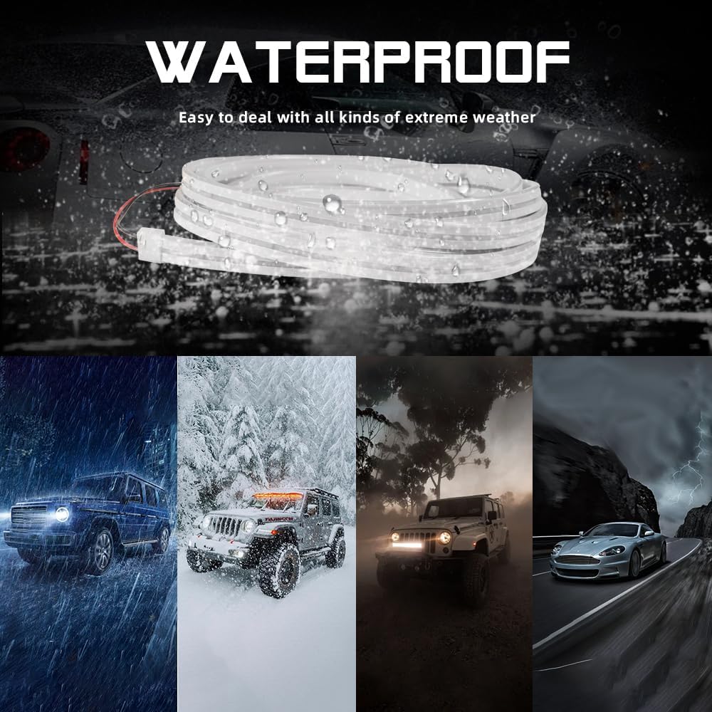 Car LED Strip Light For Trunk, 158Inch IP67 Silicone Waterproof Neon Light Strip Embedded, Flexible Cutting Universal Auto Interior Lights(White)