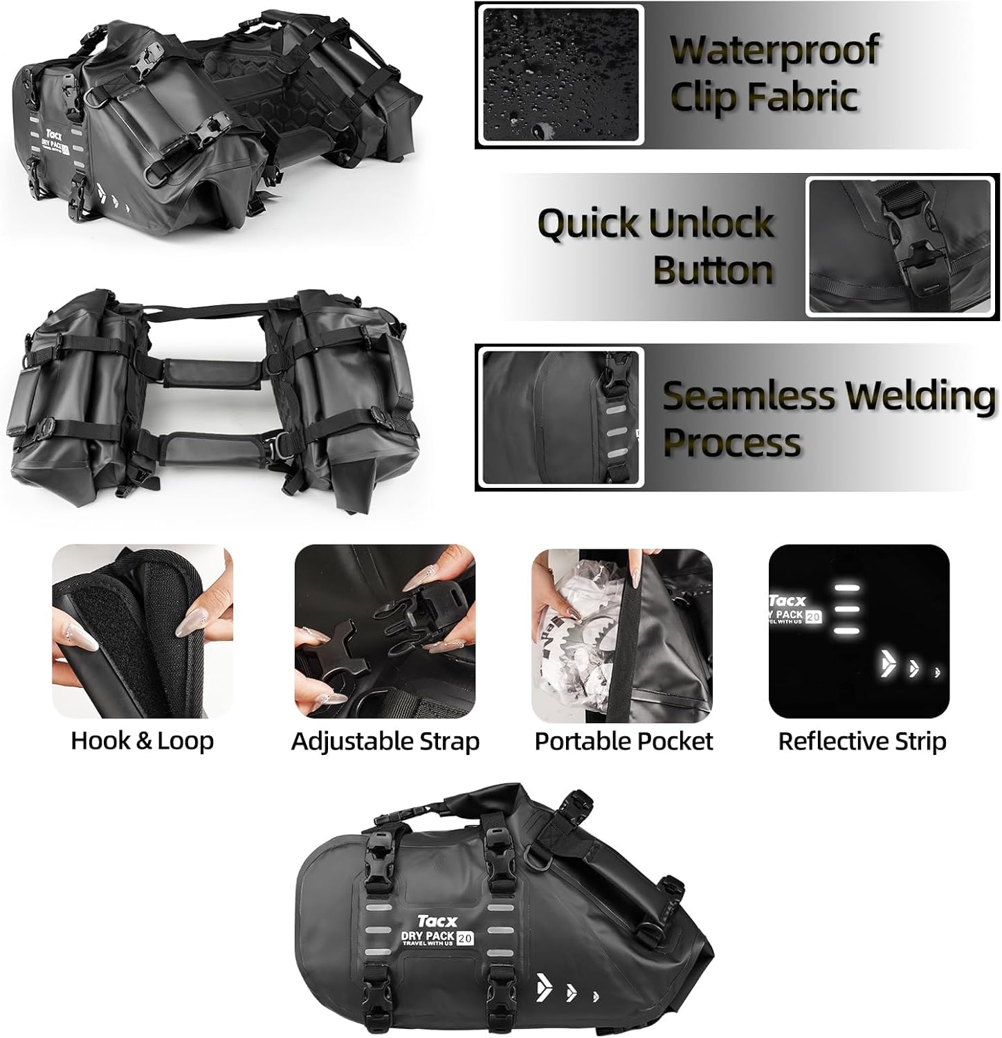 Motorcycle Saddle Bags Tail Bag, 20L Roll-top Waterproof Motor Detachable Side Trunk Bag, Motor Panniers Luggage Bag for Motorcy