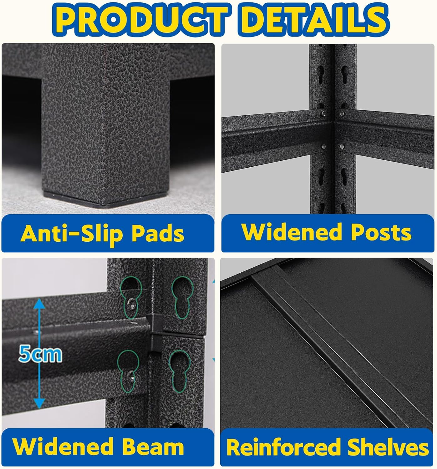 - ăHeavy Duty Construction for Maximum DurabilityăBuilt with reinforced beams, double-sided uprights, and thickened shelves, this garage shelving offers exceptional stability and load-bearing capacity. The heavy-duty metal shelving unit ensures long-lasting performance, making it a reliable choice for both residential and commercial use.