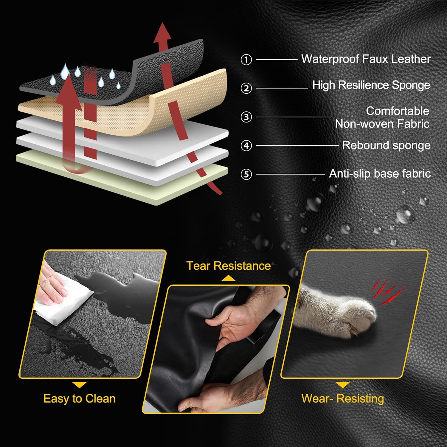 - 【Keep Function】Our seat cover does not affect the use of original functions such as airbags, seat belts, seat adjustment, heating and ventilation, etc., and is compatible with the use of baby seats. It is made of high -quality leather and high elastic foam. It has resistance fading, durable, waterproof and dustproof functions.Make the original seat from staining, pet hair and scratches.