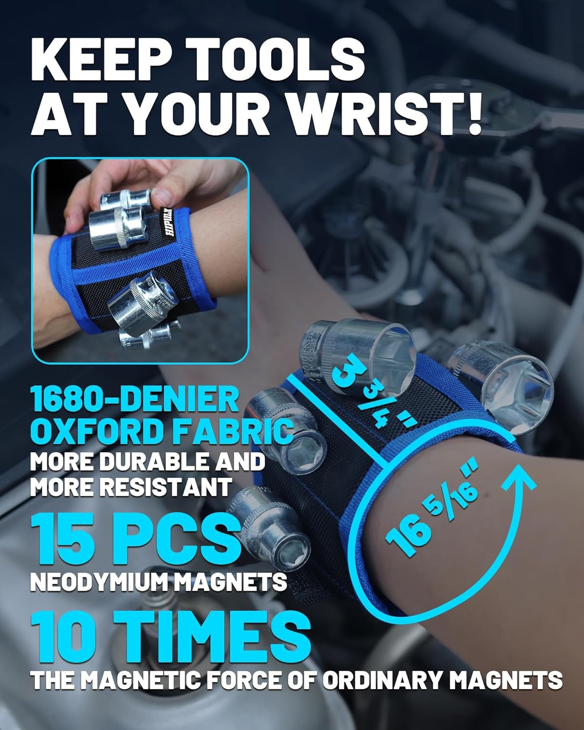 - Workshop Efficiency: Tools stay organized in tool mat, dropped parts retrieved instantly, and fasteners accessible cause wristband.You no longer have to worry about not being able to find tools. Reduce search time by 70%