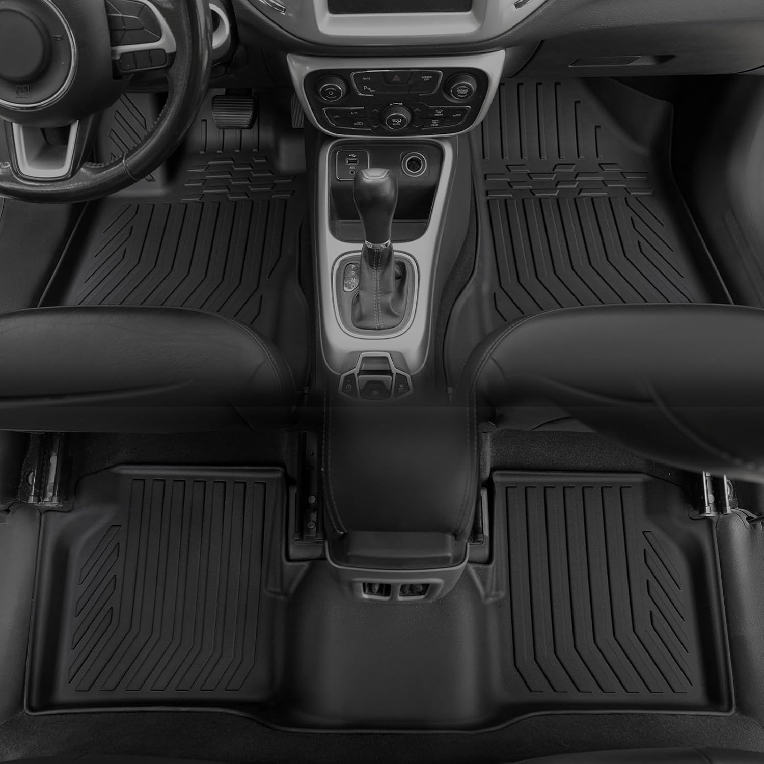- Custom Fitment: Precisely designed with 3D laser scanning technology for 2017-2025 Jeep Compass Accessories(New Body Style 2nd Generation). Includes 1st & 2nd row floor mats, upper deck cargo liner, seat back protectors and 4PCs door sill guards â 30% more components than standard sets