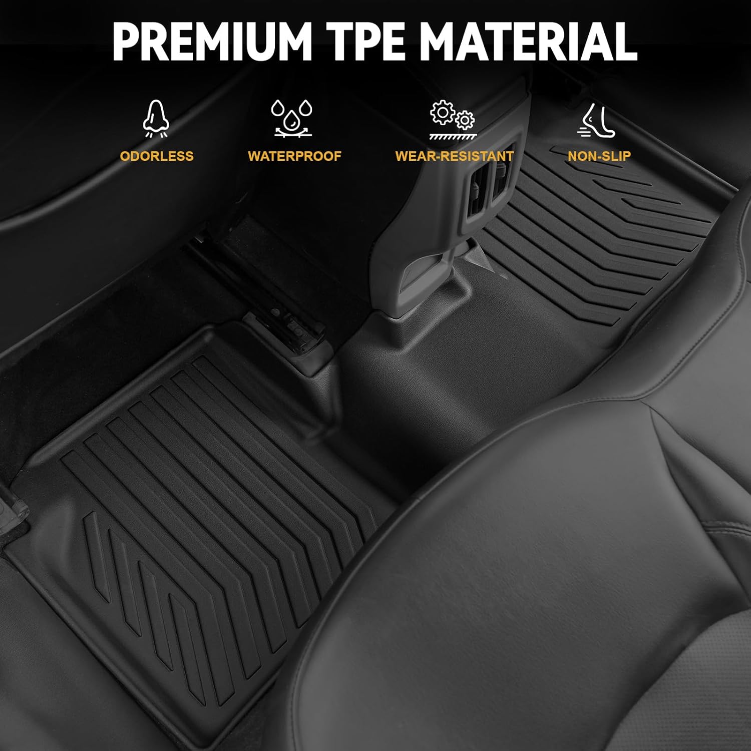 - All-weather TPE Material: 100% odorless, BPA-free: family-safe by design. Flexible TPE full-coverage car mats deliver water resistance, marine-grade durability, and daily wear protectionâall in one set