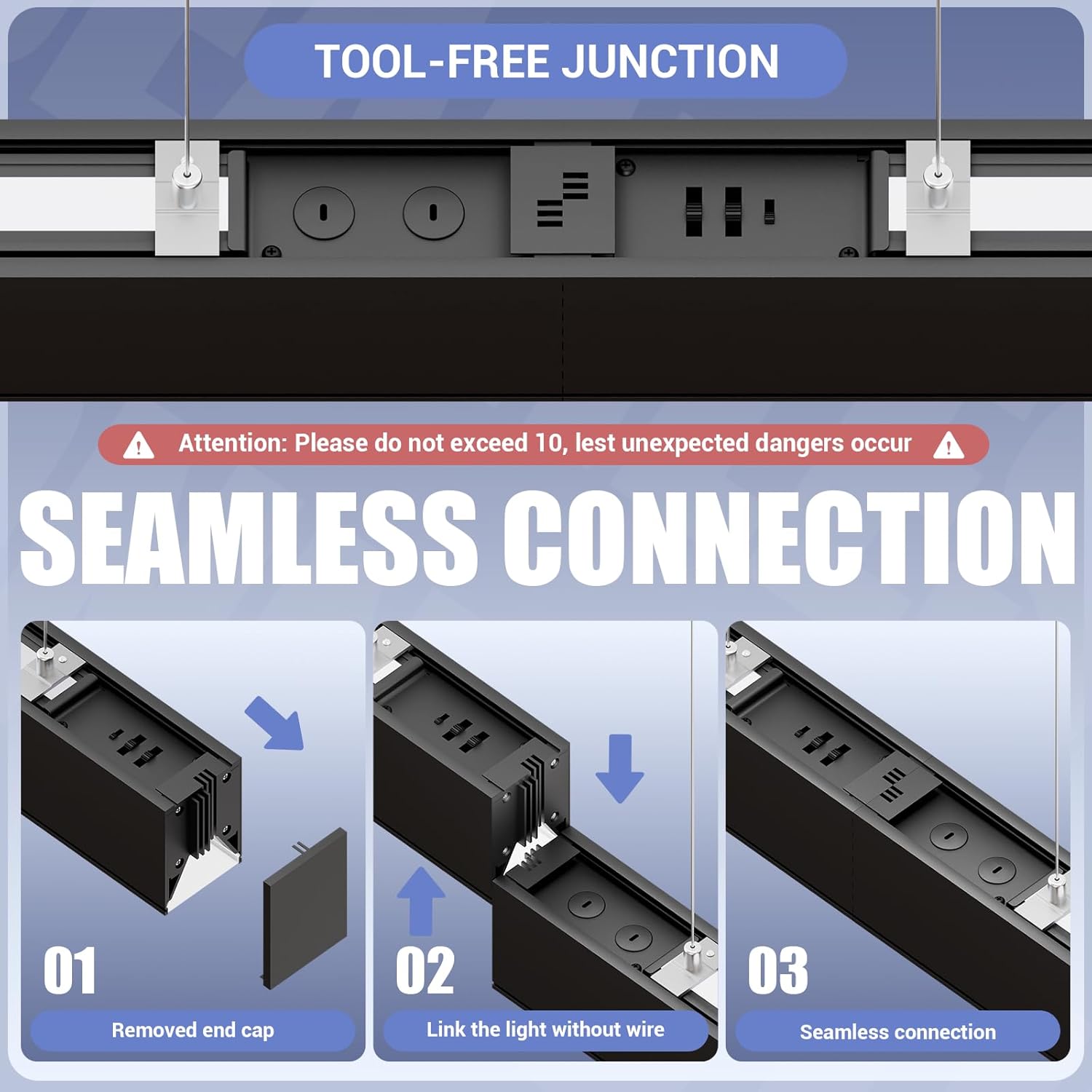 - LINKABLE AND 3000/4000/5000K 3CCT: The suspension linkable led lights can stand individually or in Seamless continuous runs with up to 8 lights, providing clean architectural lighting for your building. Compatible with 0-10V dimmer (not included) to control brightness from 0%-100% without flickering and buzzing.