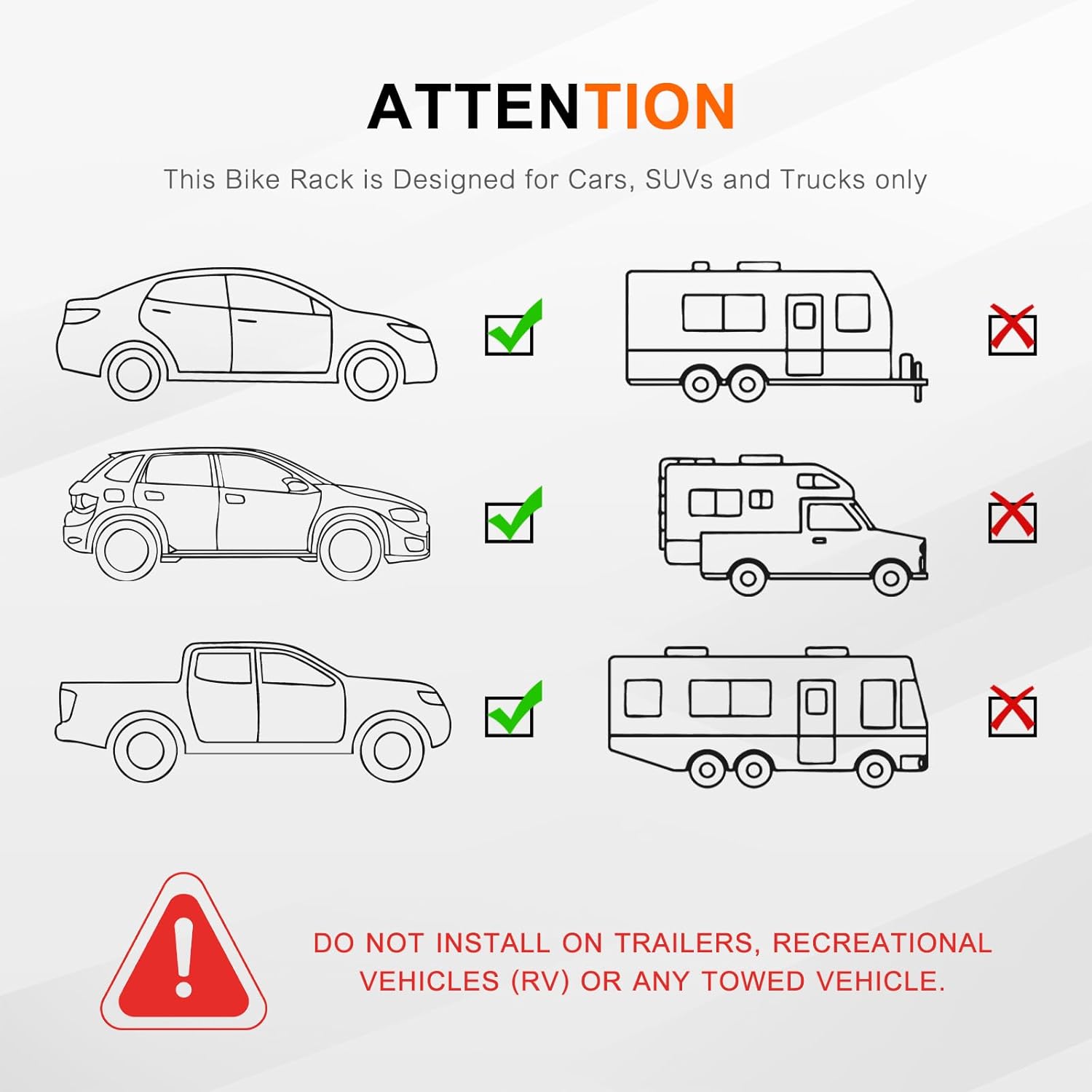 - Tiltable and Foldable: The frame can be easily tilt down by stepping on the bottom pedal, making it easy to take out items from the trunk. The entire bike rack can be compactly folded into a rectangular block when not in use
