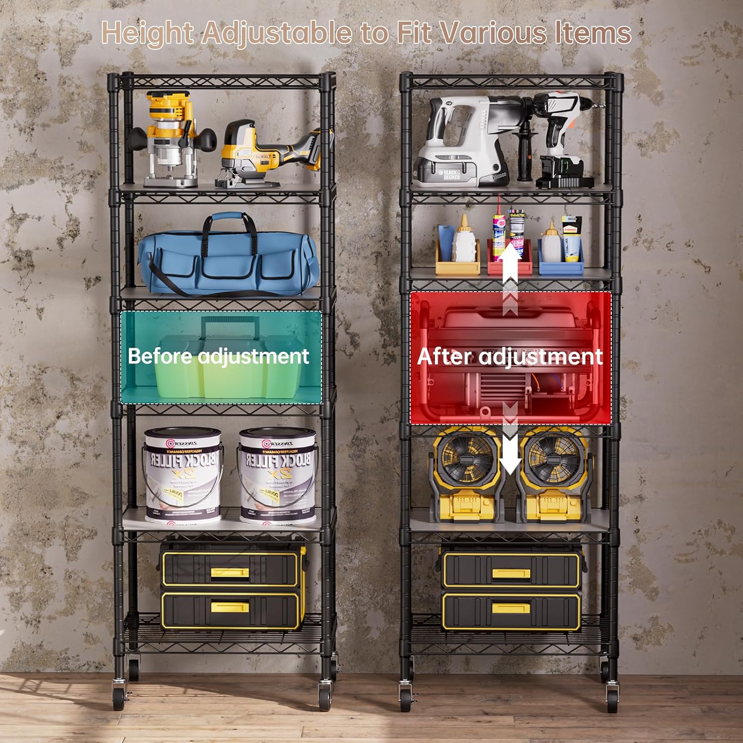 • Convenient Home Storage: Metal wire shelves with adjustable spacing make perfect for narrow spaces or room corners such as kitchens, bathrooms, laundry rooms, balconies, garages, entries, or offices.