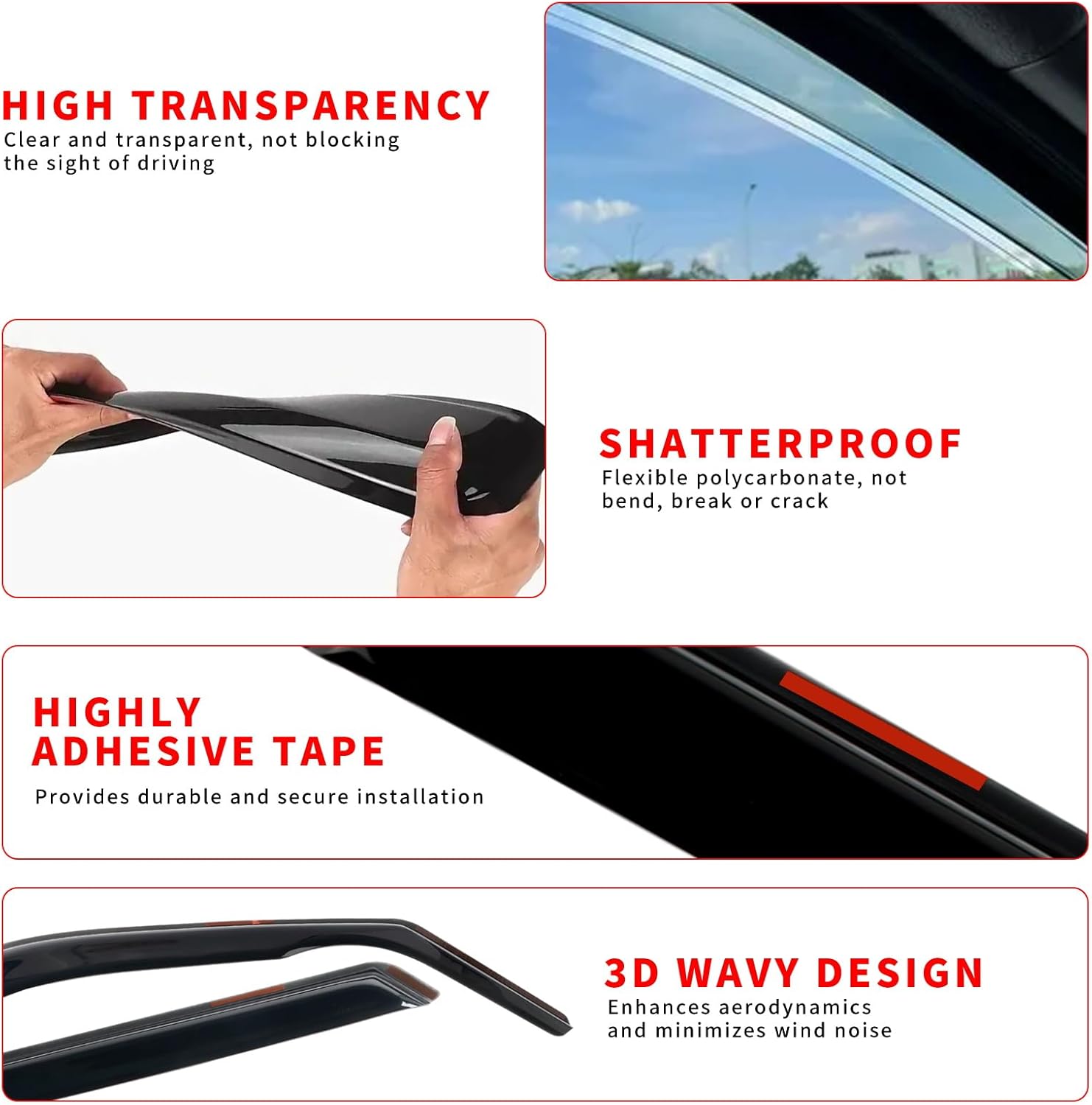 - ăImprove Driving Experienceă Allows fresh air to circulate through open windows while keeping the rain out or reduces heat. Reduce mirror and window fogging; reduce sun glare through side window. Dark Smoke translucent color will not obstruct the driver's view while driving