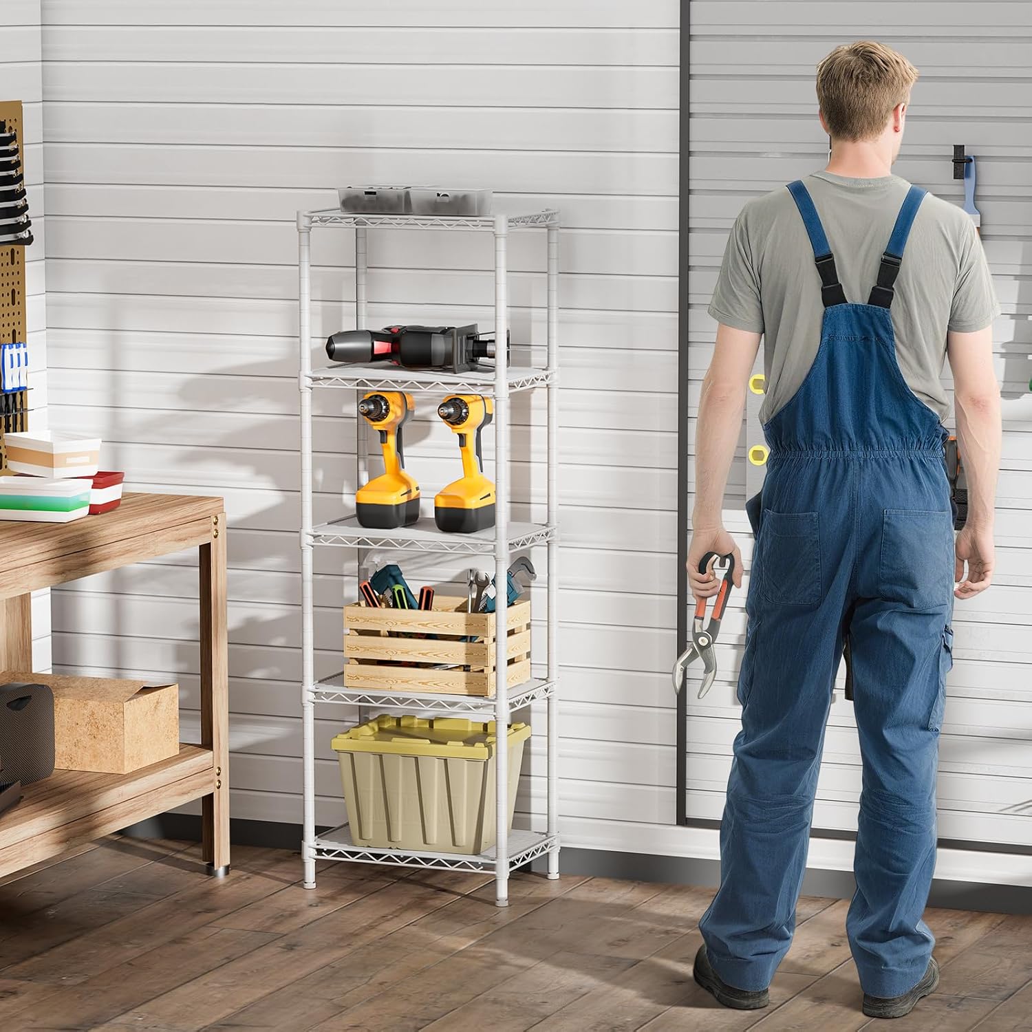 SINGAYE 5 Small Wire Shelves Kitchen Pantry Close Home Organizers and Storage Bathroom Shelf Laundry Room Organization Adjustable Book Metal Garage Shelving Unit
