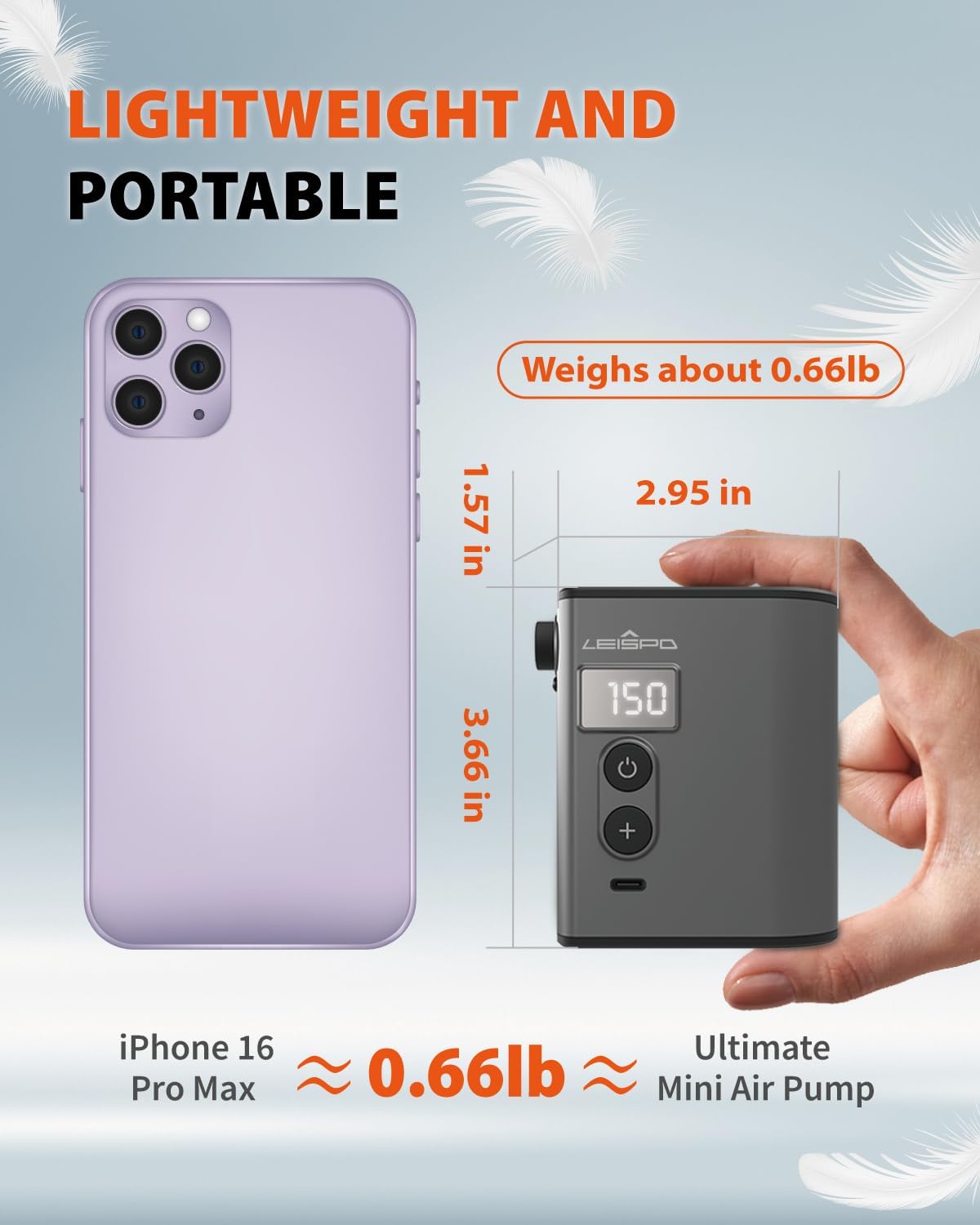 - Fast Inflation with Powerful Motor – This mini bike tire pump features a high-efficiency motor, inflating a 700 x 23C road bike tire from 80-100 PSI in just 32 seconds. With a maximum pressure of 150PSI, it is ideal for bicycles, motorcycles, and sports balls.