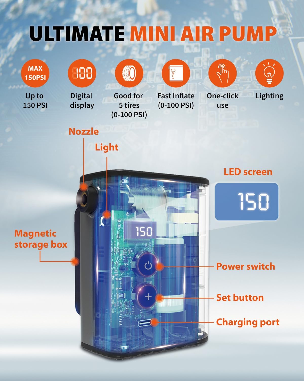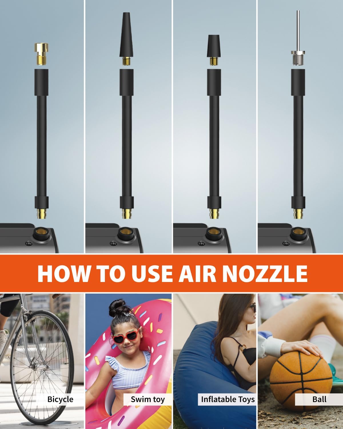 - Versatile & Easy to Use – Suitable for road bikes, mountain bikes, e-bikes, motorcycles, and sports balls, making it a must-have tool for cyclists and outdoor enthusiasts. The one-button start design simplifies operation, and the Type-C charging port ensures fast and convenient recharging.