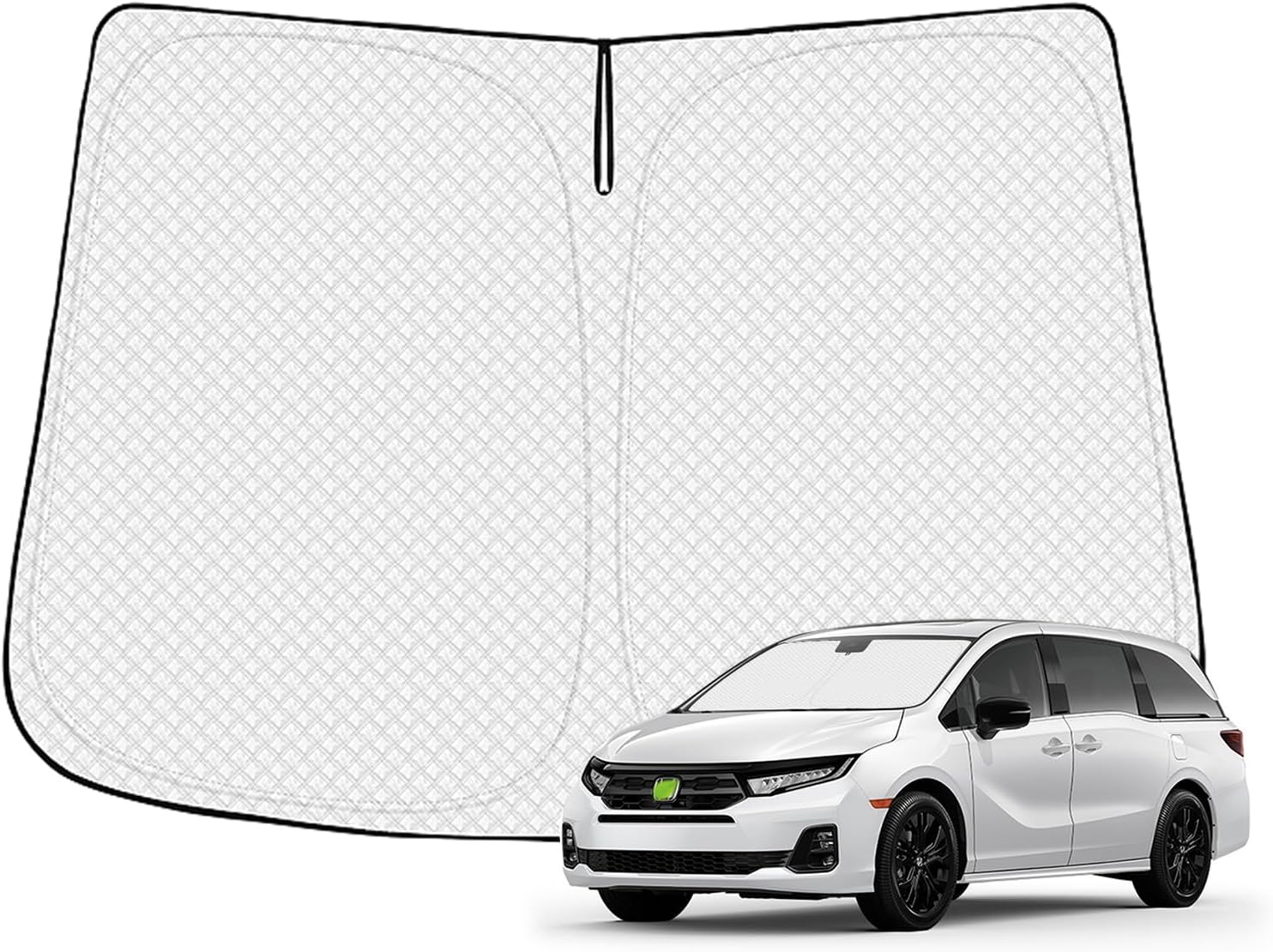 - 【Perfect Fit】Canvcle windshield sun shield fits perfectly for Honda Odyssey LX,EX,EX-L,Touring,Elite Minivan 2018 2019 2020 2021 2022 2023 2024 2025 2026 front windshield without any gaps, don't worry about the size. Works well in keeping your car cooler, will be a must-have accessory for your car!
