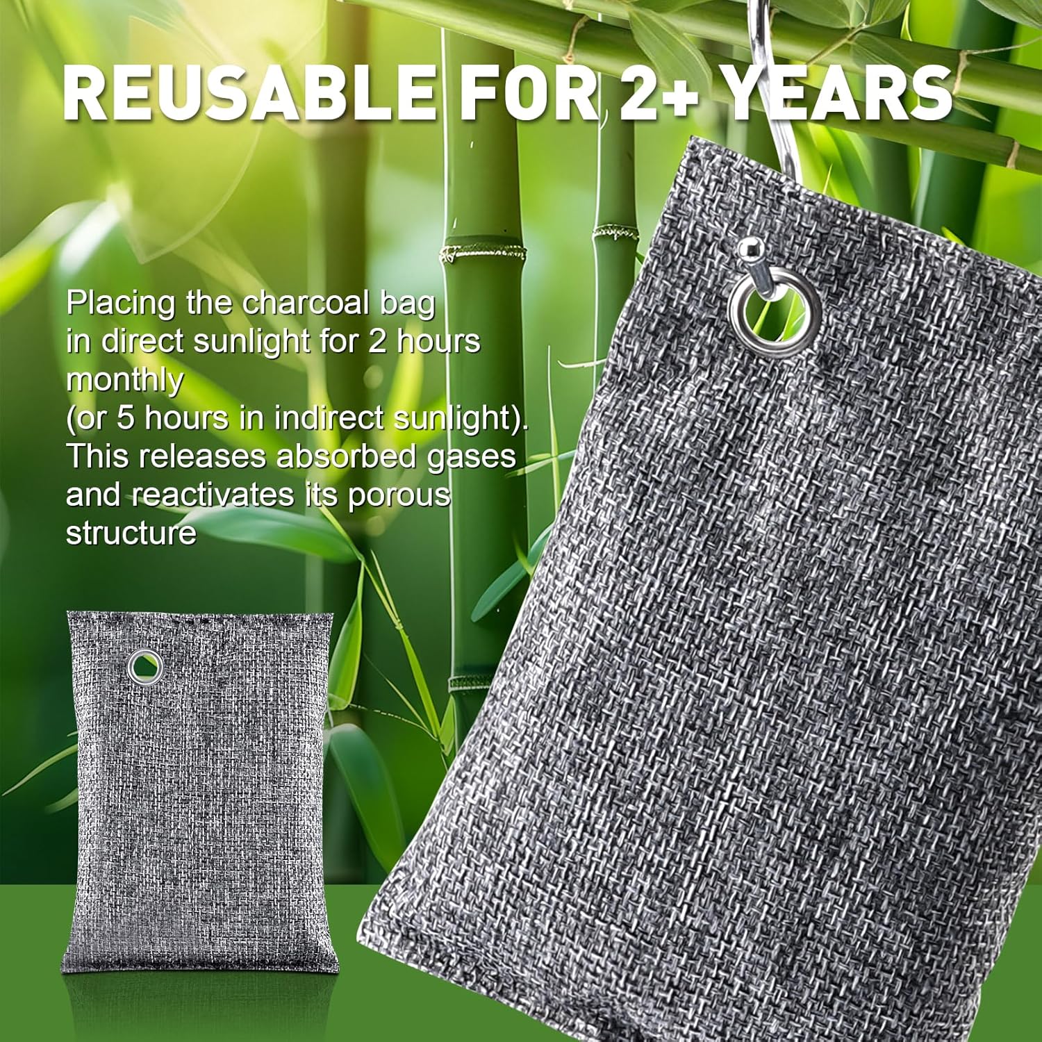 - 【Air Fresheners for Home】:Refresh your home's air for 2 years with our rechargeable charcoal deodorizer bags odor elimination, just sunbathe monthly. Perfect for bedrooms, drawers, and more. Eco-friendly & cost-effective