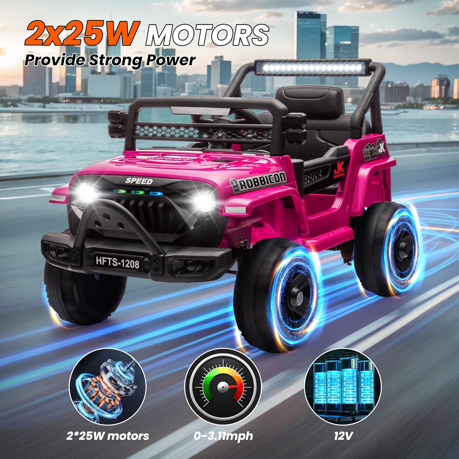 12V Ride on Electric Truck Car for Kids, 12V Kids Electric Vehicles w/Remote Control, Four-Wheel Suspension, USB, Bluetooth, Power Display, Lights, Battery Powered Ride on Toys for Boys Girls (Pink)