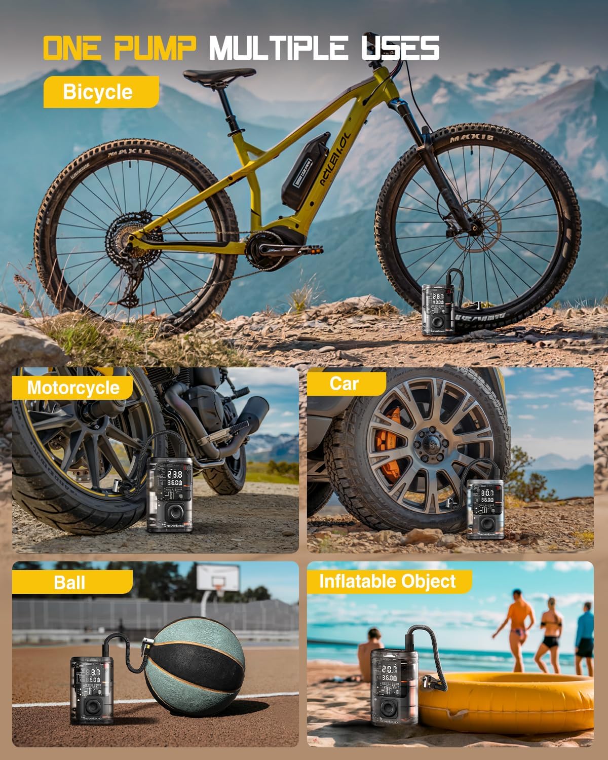 - ă4+N Modes â For All Inflation Needsă Inflate car, bike, motorcycle tires, and sports balls with 4+N smart modes. Switch to manual mode for up to 150 PSI. This all-in-one portable air compressor ensures accurate and easy inflation for any scenario.
