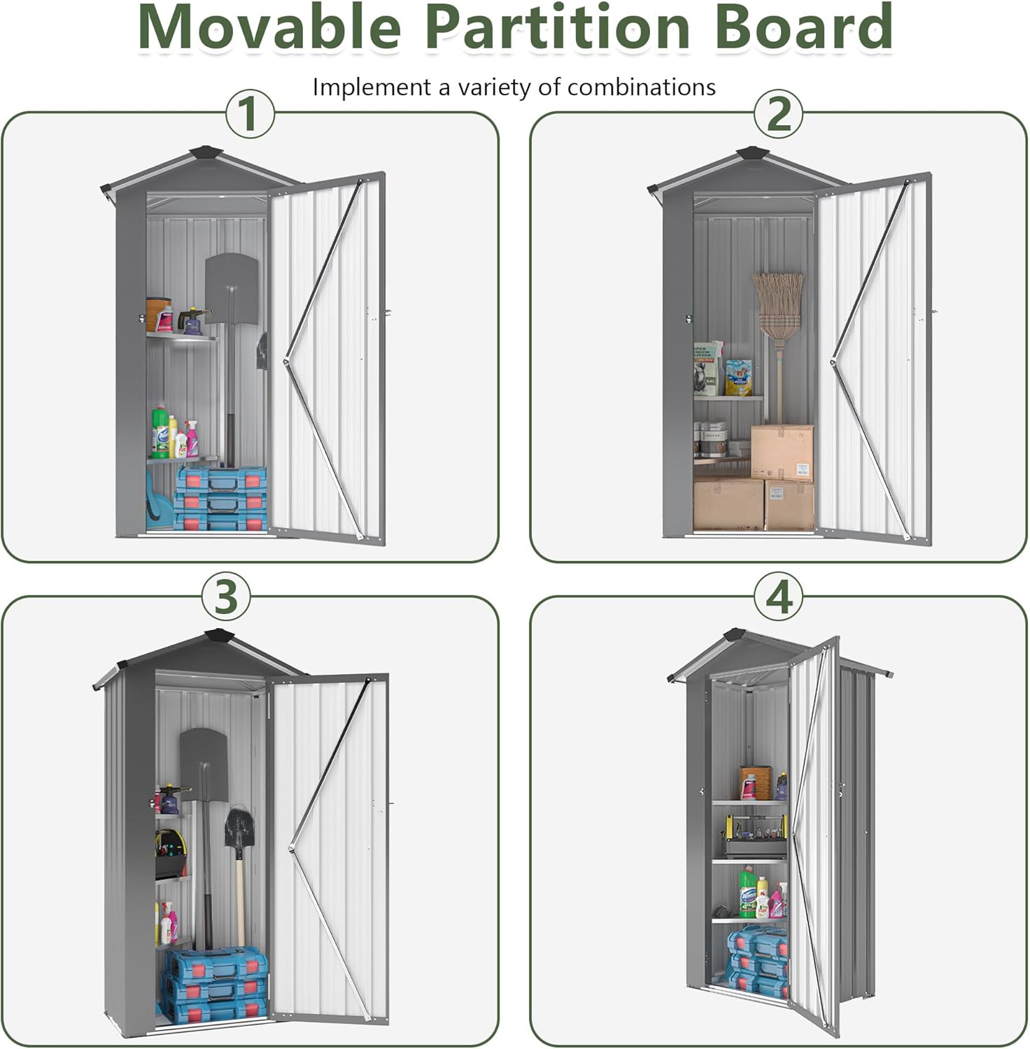 - Adjustable Shelving: The customizable shelves provide flexible storage solutions for long-handled tools, power tools, and household items. Adapt the shelving layout to suit your workspace, garage, or garden needs.