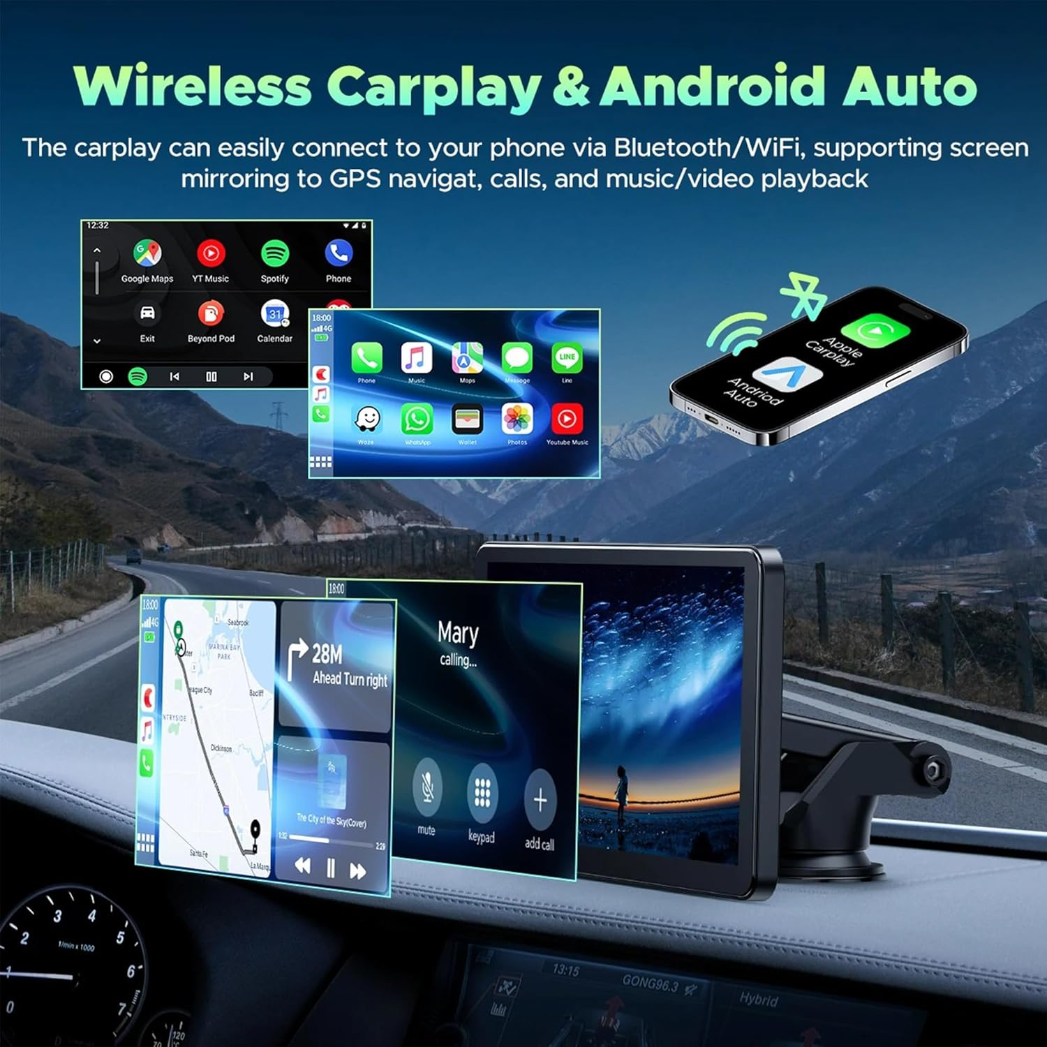 - ăOnline map and intelligent real-time GPS navigationă: Portable car screens provide accurate real-time location without delay through precise real-time positioning and GPS navigation. Real time map information can also be displayed in widescreen format on the parking screen. It utilizes the latest smartphone GPS data to directly set navigation addresses on the phone or CarPlay screen, enabling popular maps such as Google Maps and Waze to provide real-time navigation