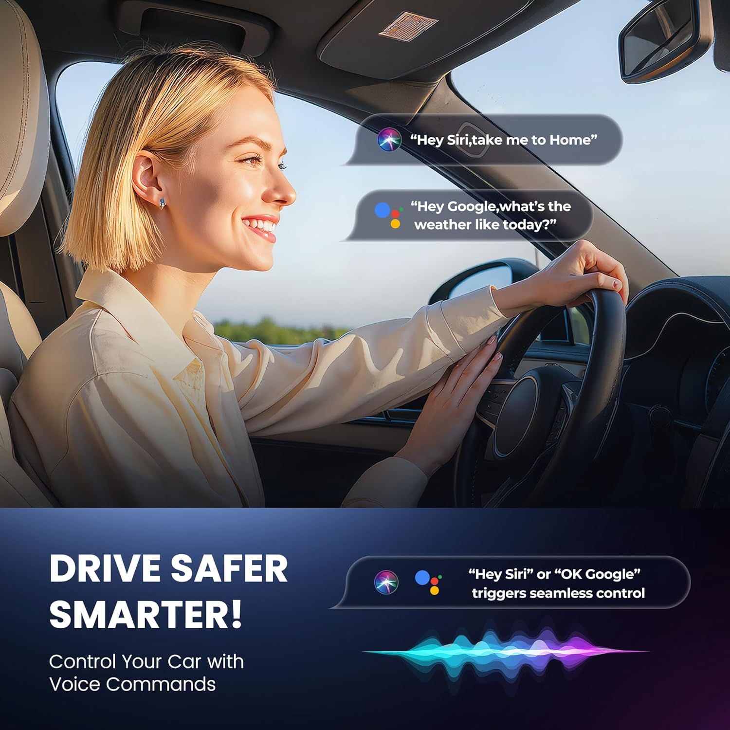 - Smart Voice Commands + Original Controls Preservation. Use Siri/Google Assistant hands-free while retaining steering wheel buttons, touchscreen, and factory knobs. No learning curve - designed for wireless carplay adapter for android and i Phone drivers who value safety.