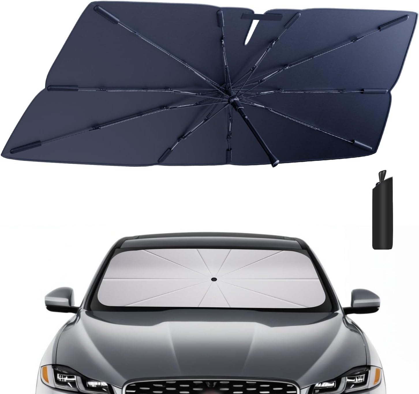 - Quick Installation and Portability for Jaguar F-Pace: This Jaguar F-Pace windshield sun shade umbrella provides instant shade and UV protection for your Jaguar F-Pace. Its compact, foldable design fits neatly in the side storage, ensuring your Jaguar F-Pace is always ready for sun protection. Perfect for every Jaguar F-Pace owner, keeping your vehicle cool and protected.